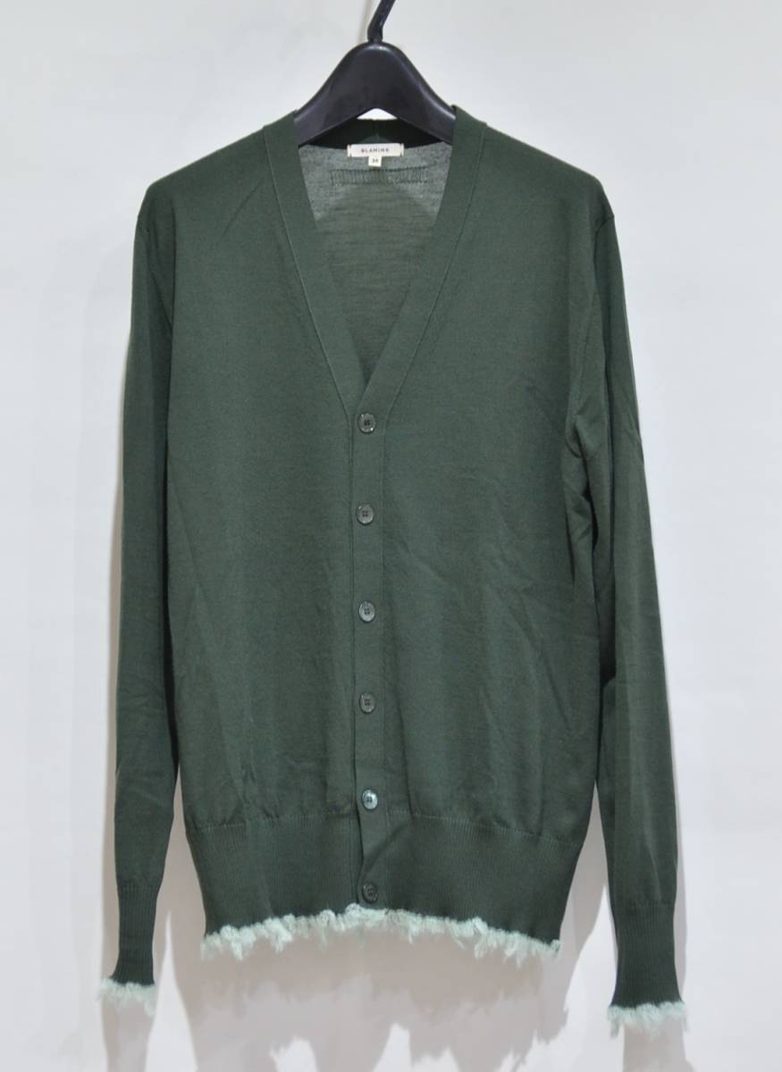 BLAMINK ブラミンク フリンジ Vネック カーディガン ダークグリーン 36 Y-29582B