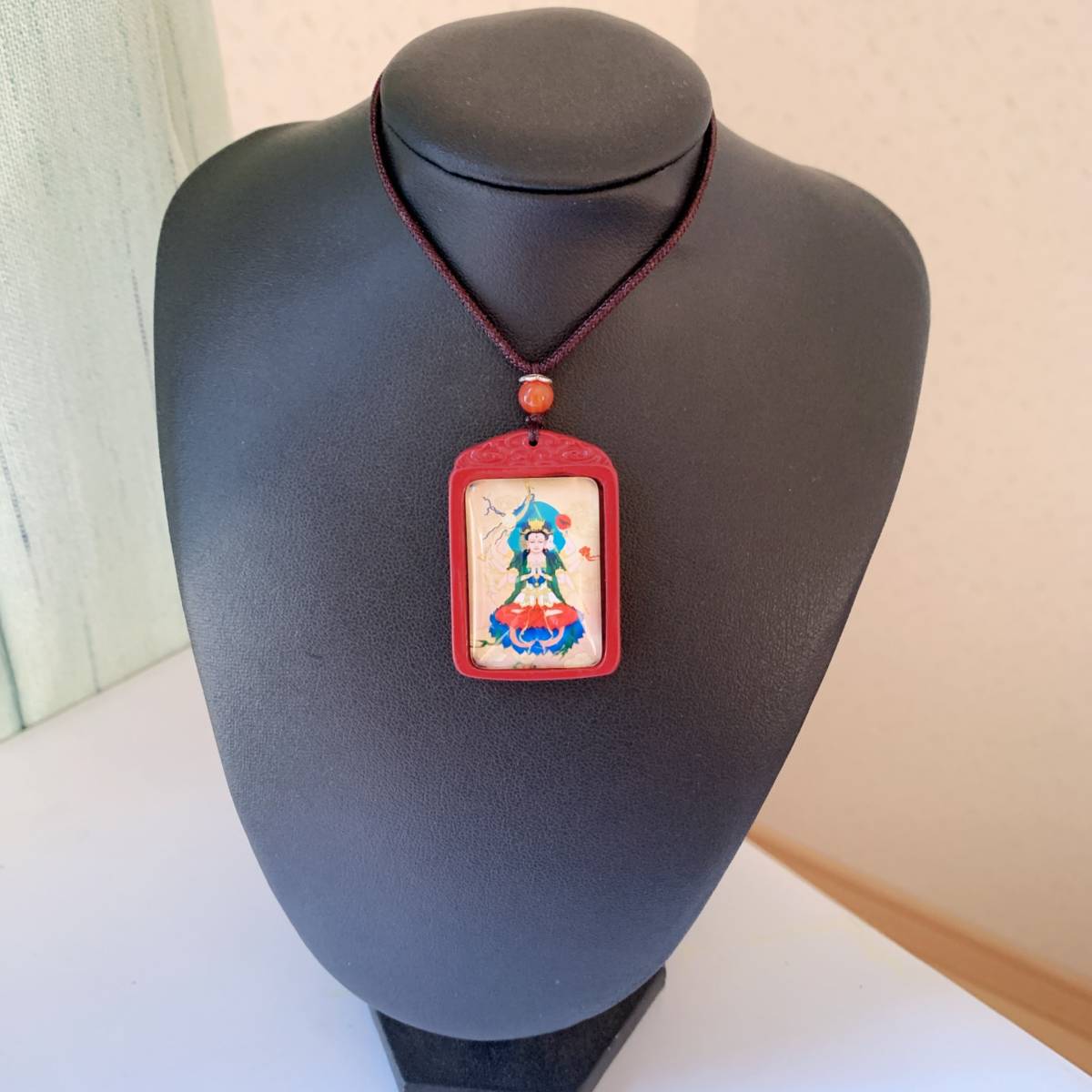 ◇シナバー(辰砂)+赤瑪瑙1粒◇タンカ◇ネックレス ペンダント◇巾着袋付き◇プレゼントにも 026P120215