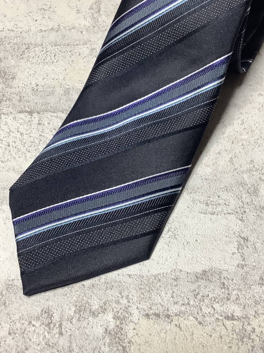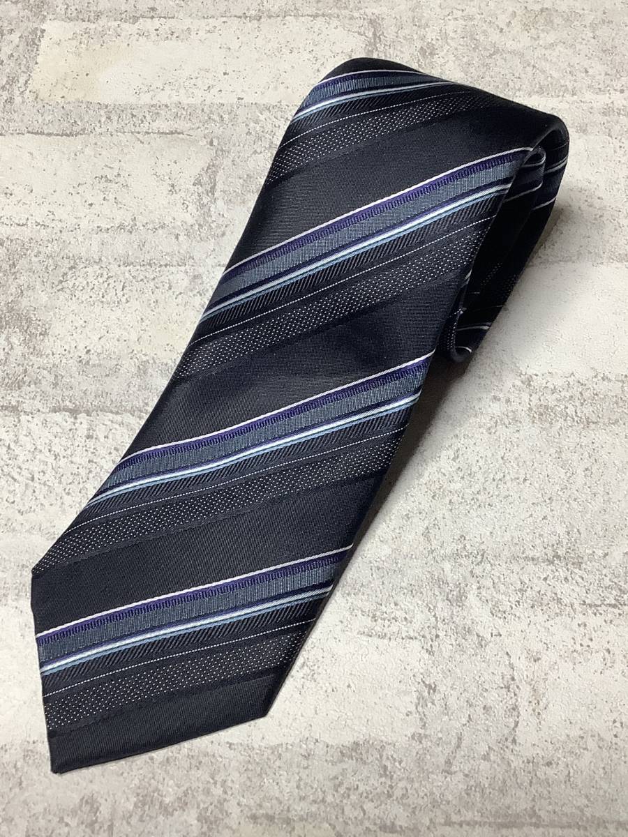 新品未使用 定番ネクタイ  シルク100% ネイビー系 ブルーストライプ柄  参考上代3,900〜4,900円