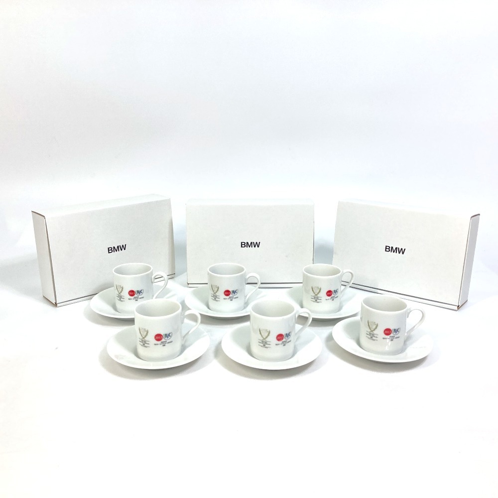 BMW ビーエムダブリュー ロゴ/カップ&ソーサー デミタスカップ ペア×3 ティーカップ 陶器 ホワイト ユニセックス【中古】未使用