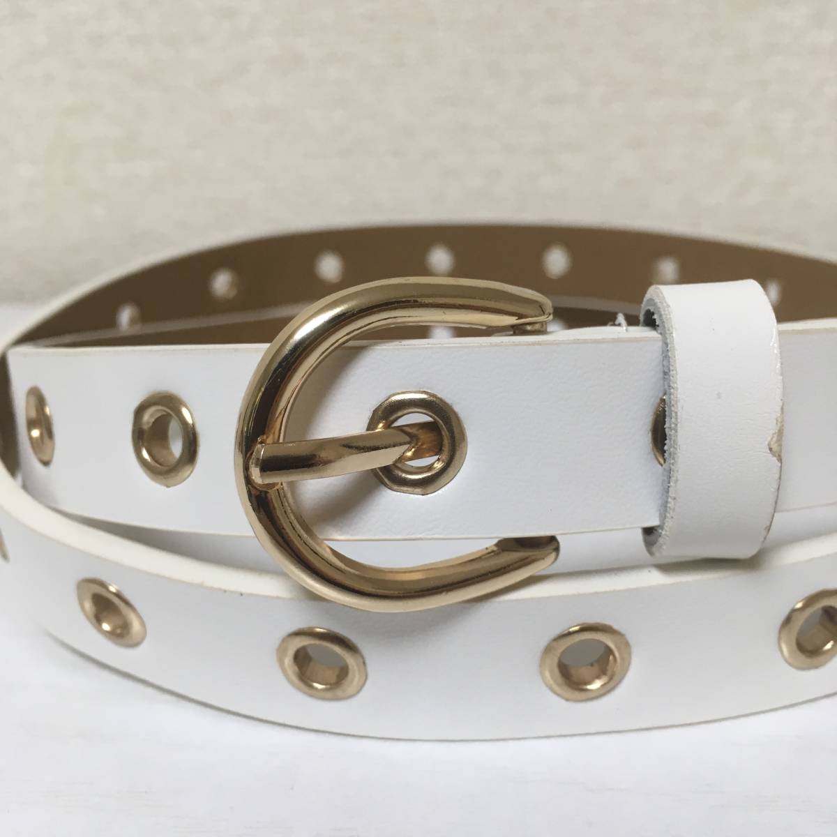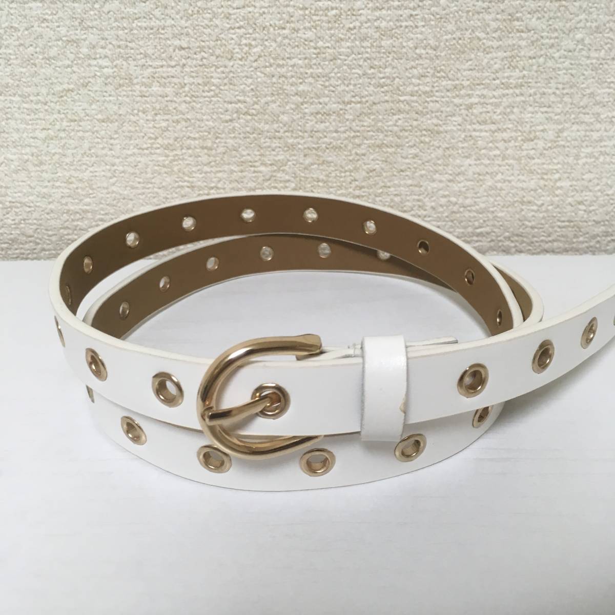 | ハトメベルトの新品未使用品です。 サイズ:幅1.8cm 長さ105cm(バックルを含めて) ウエスト:約100cmまで対応 素材:合皮 色:白色 ・各所にハトメ穴があり、約100cmまで幅広いウエストに対応しています。 ・デニム、ジーンズ(ジーパン、Gパン)やチノパンやワイドパンツ用にどうぞ 他にもたくさんベルトを出品していますので、プロフからご覧ください^^ |