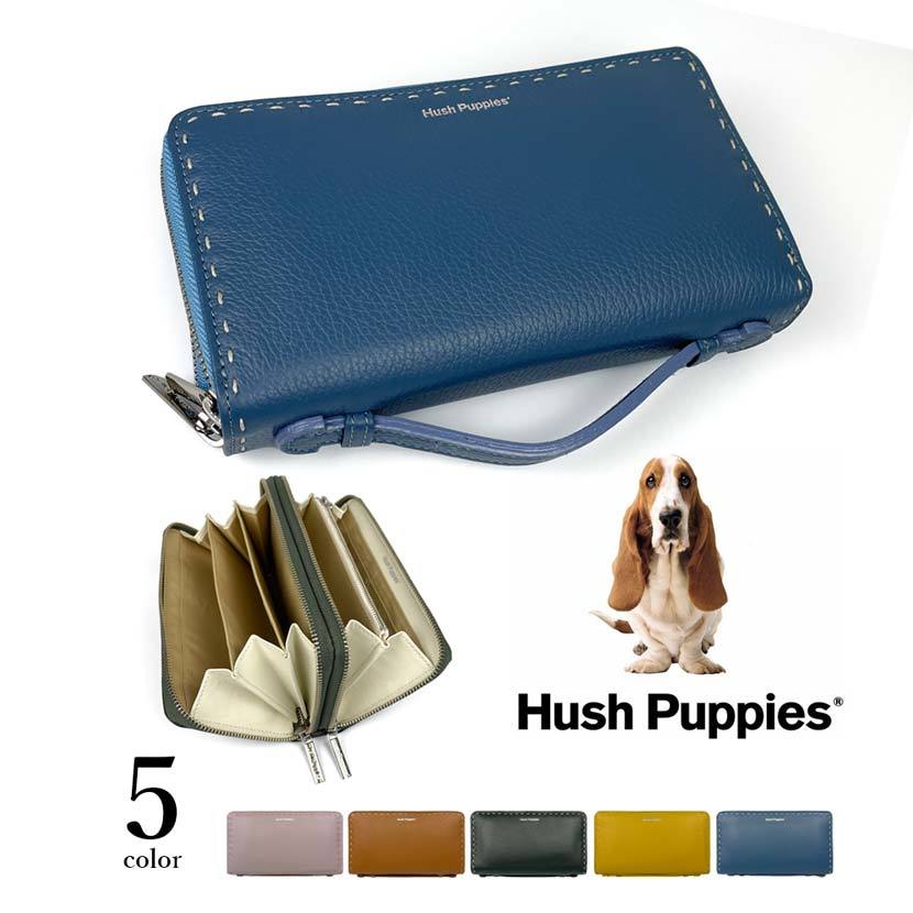 全5色 Hush Puppies ハッシュパピー リアルレザー ステッチデザイン ダブルファスナー 長財布