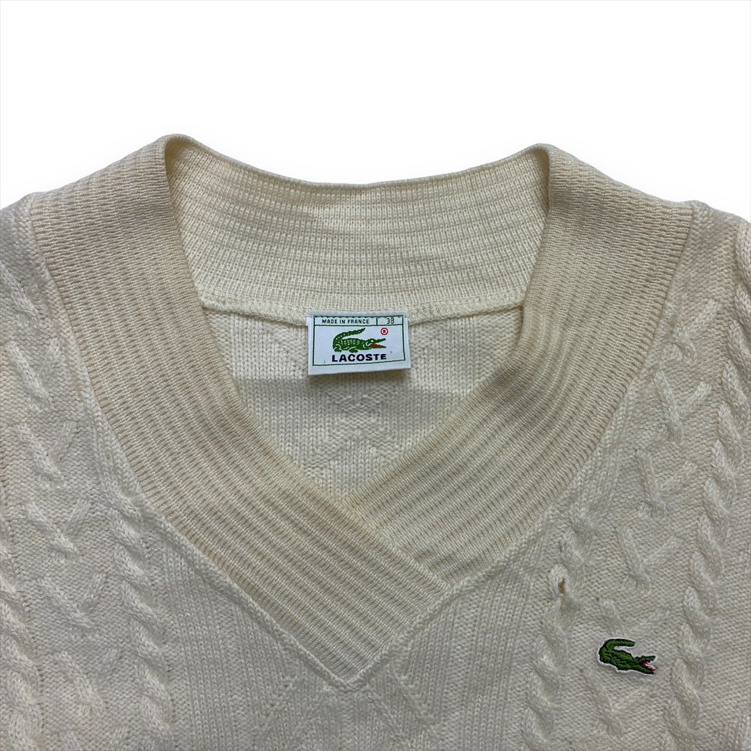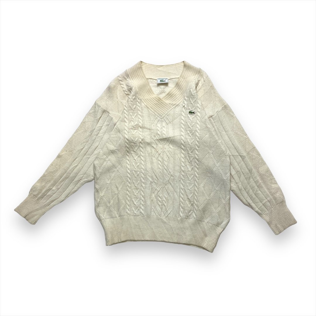 ラコステ ニット セーター ホワイト LACOSTE 古着 レディース FREE サイズ38 シンプル ワンポイント ロゴ