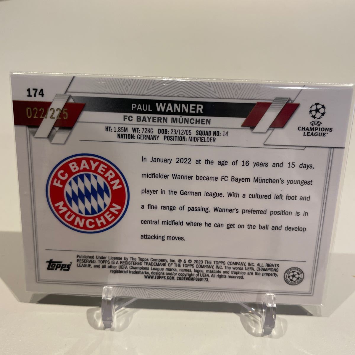 Topps Chrome PAUL WANNER #174 /225シリnight vision fc bayern soccer トレカ