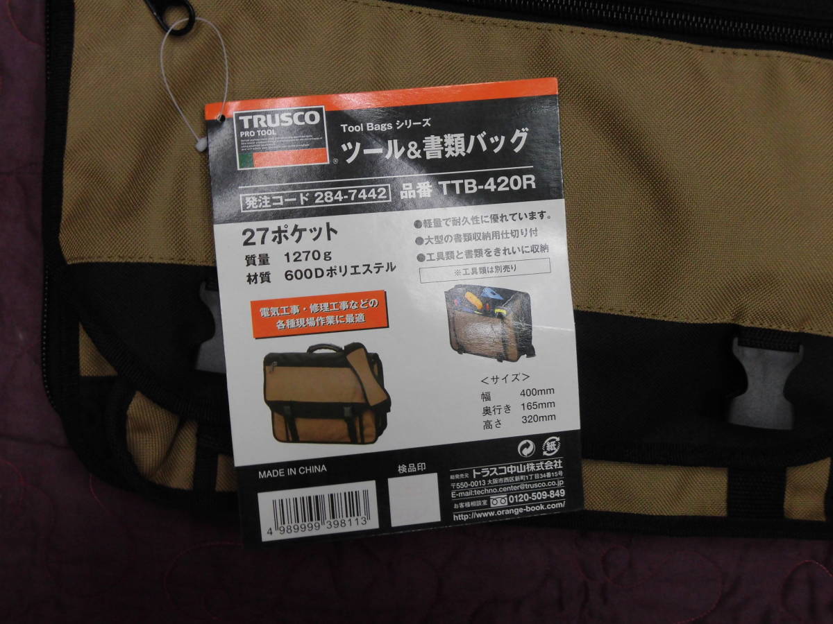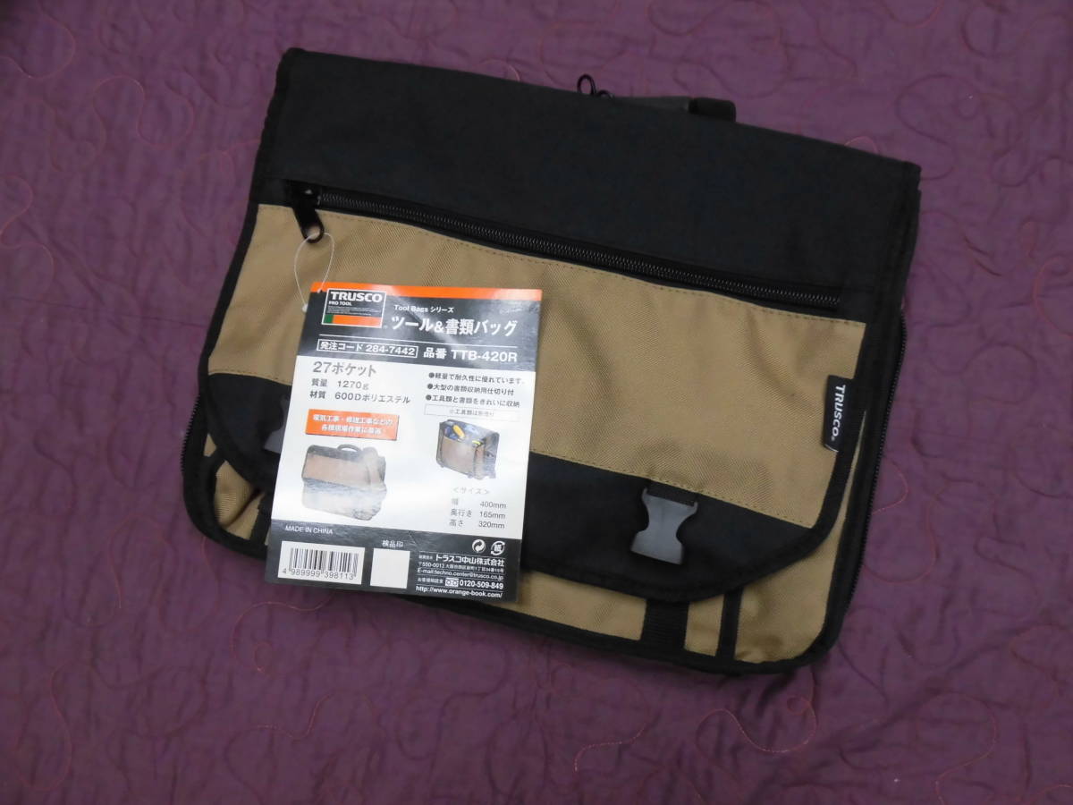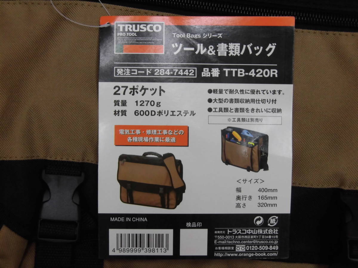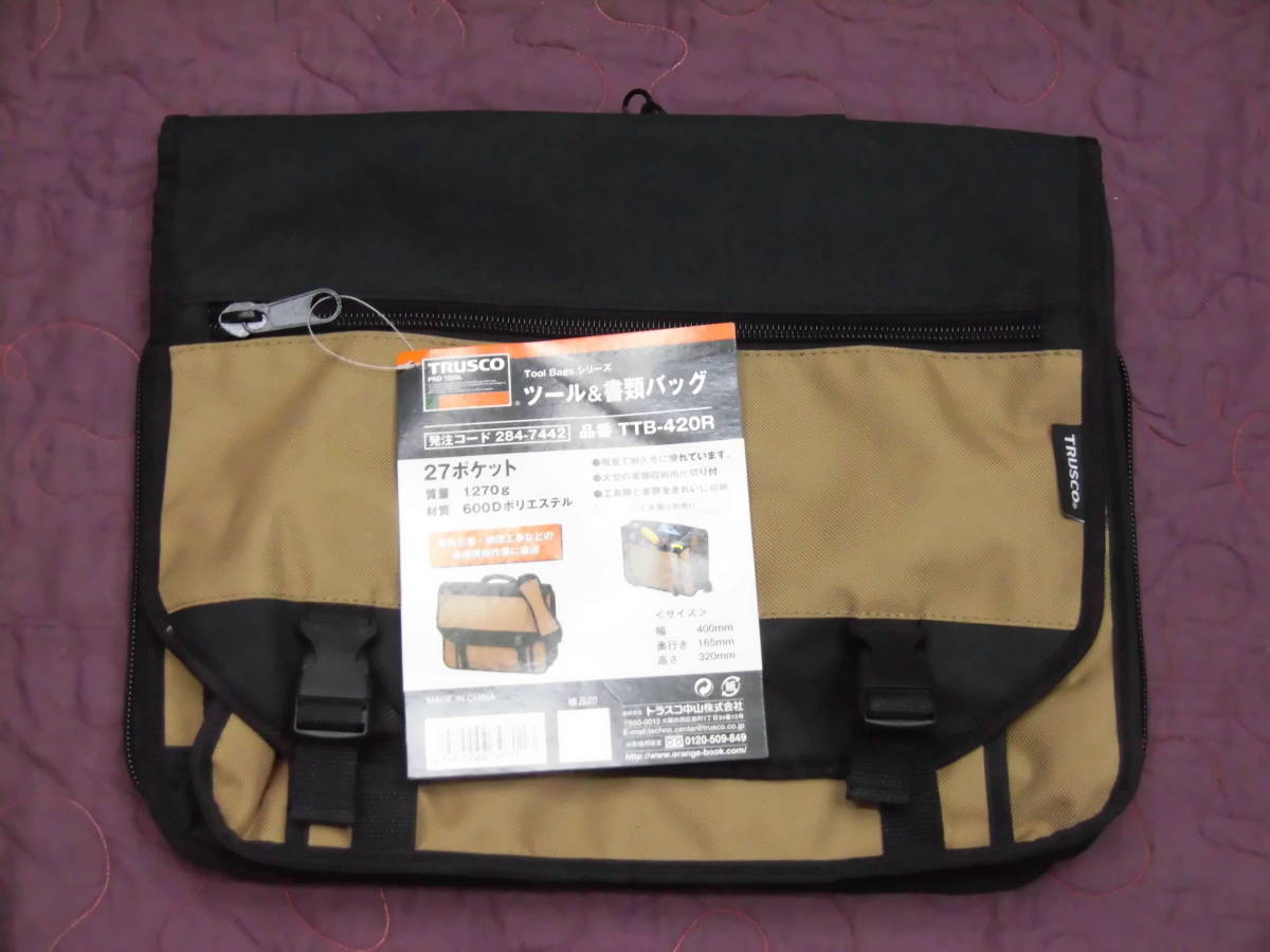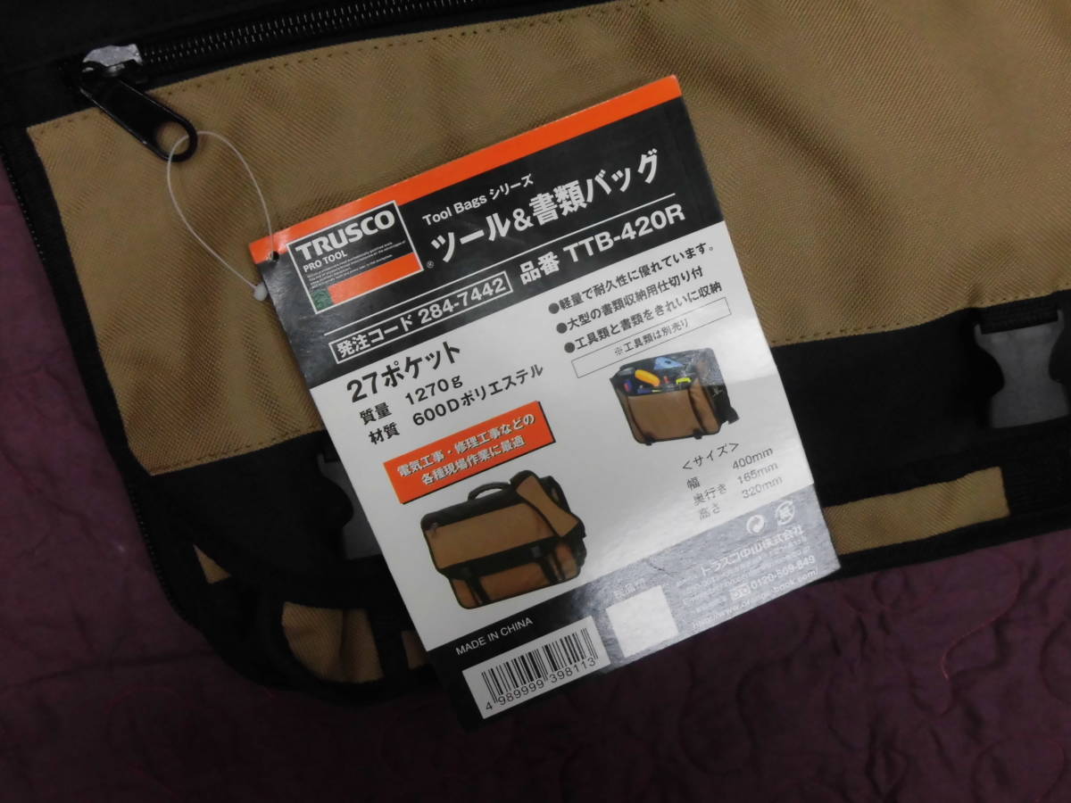 トラスコ中山 ツール&書類バック 400×165×320 27ポケット ブラック TTB-420R