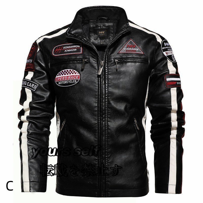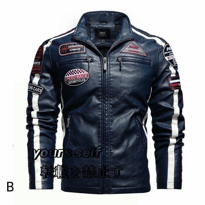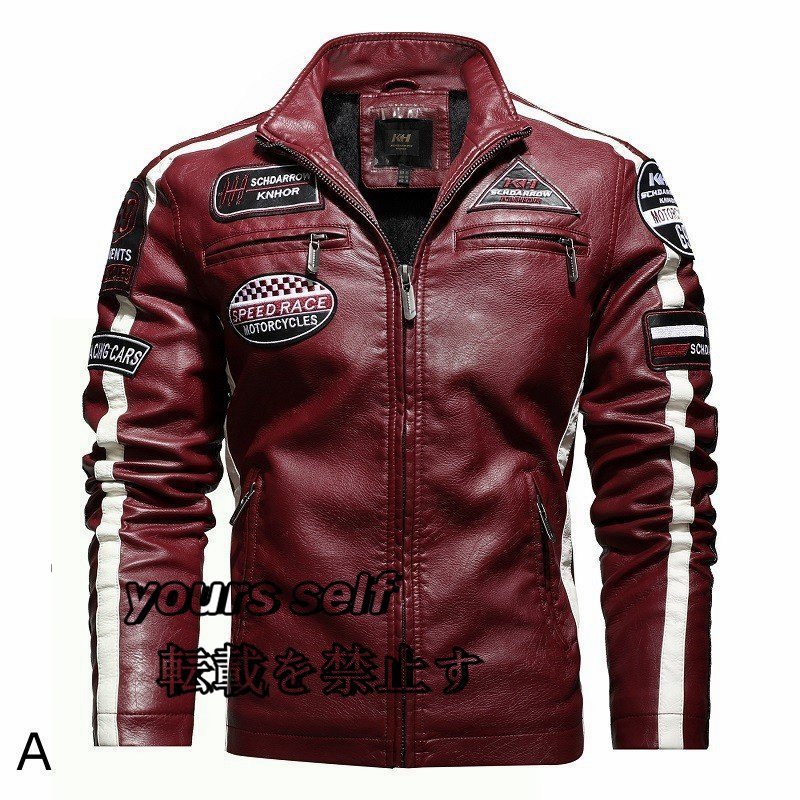 爆売り! ライダース 皮ジャン 裏起毛 レザージャケット 欧米designer ワッペン 野球服プレミアム 上質 スタジャン 三色選択 レッド 3XL