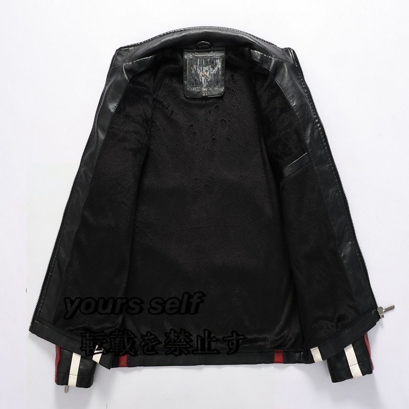 新品*高級 ライダース 皮ジャン 裏起毛 レザージャケット 欧米designer ワッペン 野球服プレミアム 上質 スタジャン 三色選択 レッド 3XL