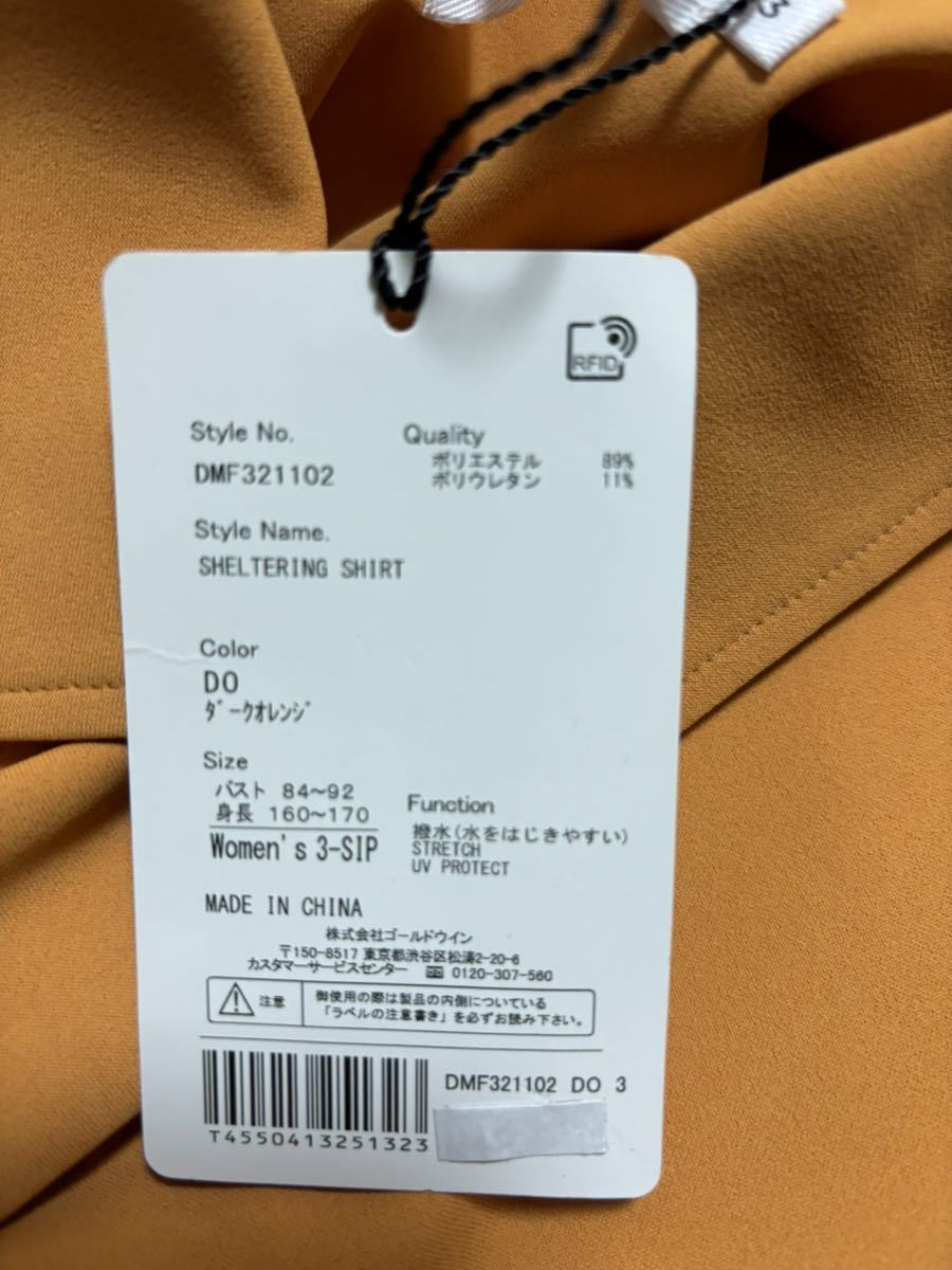 *サイズ 3 Lサイズくらい(バスト84-92 身長160-170) *色 ダークオレンジ *素材 ポリエステル89% ポリウレタン11% ■生地のハリや風合いが特徴的なシャツジャケット。ストレッチ性がありラフな着心地ながら綺麗見えするのが特徴です。UVプロテクト(UPF50+、紫外線カット率95%以上)機能や撥水機能付きで軽い雨や汚れも気にすることなく着用できます。シャツとしてや、重ね着をしてジャケット感覚でも着用できるので、様々なスタイリングで活躍してくれます。 |