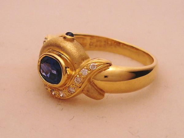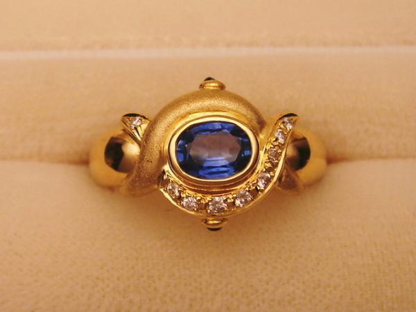 上下の側面には小さなサファイヤがセットされ、オシャレムードたっぷり・・・。
