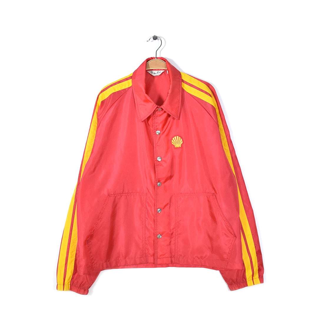 70s シェル石油 ヴィンテージナイロンジャケット 赤黄 ワッペン レーシングジャケット Mr. BILL サイズL アメカジ 古着 @DZ0456
