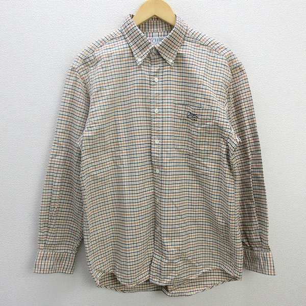 k■チャップス ラルフローレン/CHAPS RALPH LAUREN チェック柄 長袖BDシャツ【L】ベージュ/MENS■113【中古】