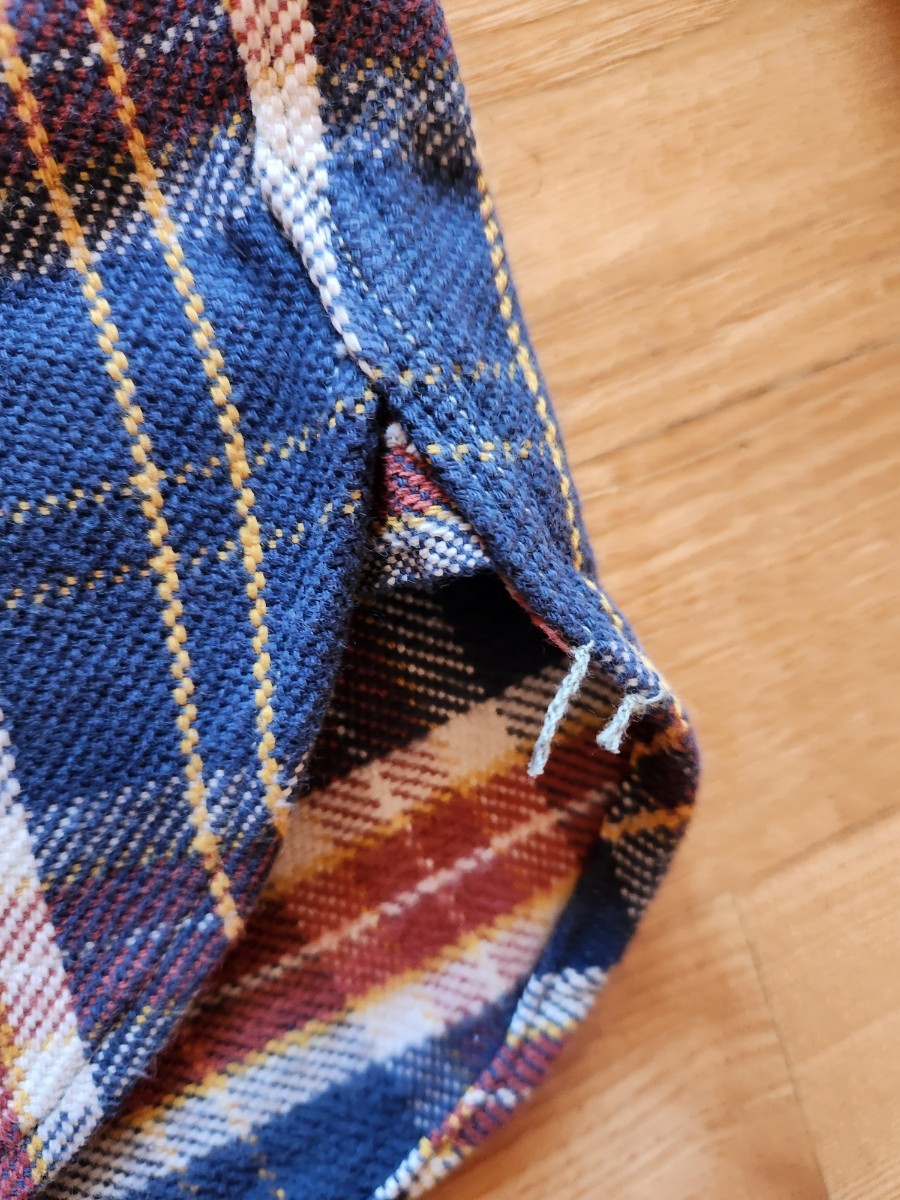 ※ワンウォッシュ済み 縫製は2本針巻縫い、裾の両サイドに補強用の布が付きます。内側がほんの少し起毛されております。