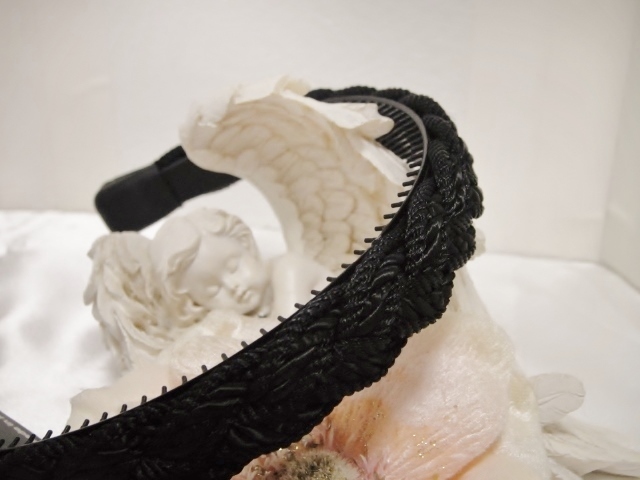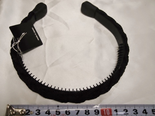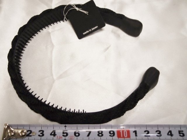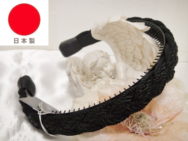 ♪ 新品 カチューシャ 日本製『高品質/中太/ロープ編込み/頭が痛くならない/パールブラック/黒』♪