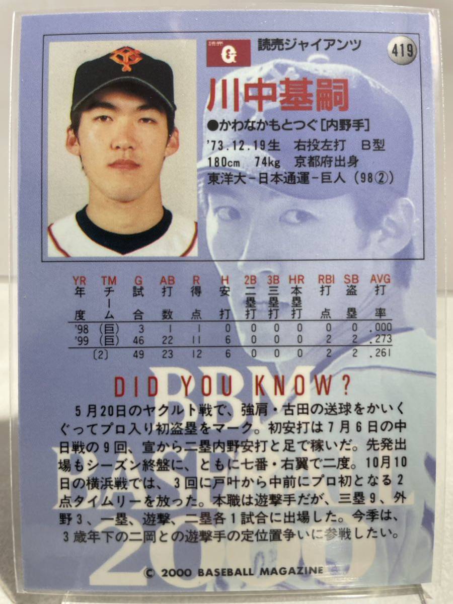 川中基嗣 418 BBM 2000 ベースボールマガジン 読売ジャイアンツ 巨人