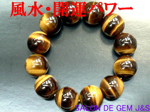 ●超大粒!16.0mm珠のタイガーアイ(虎目石)を12珠使用した、高級開運ブレスレット!