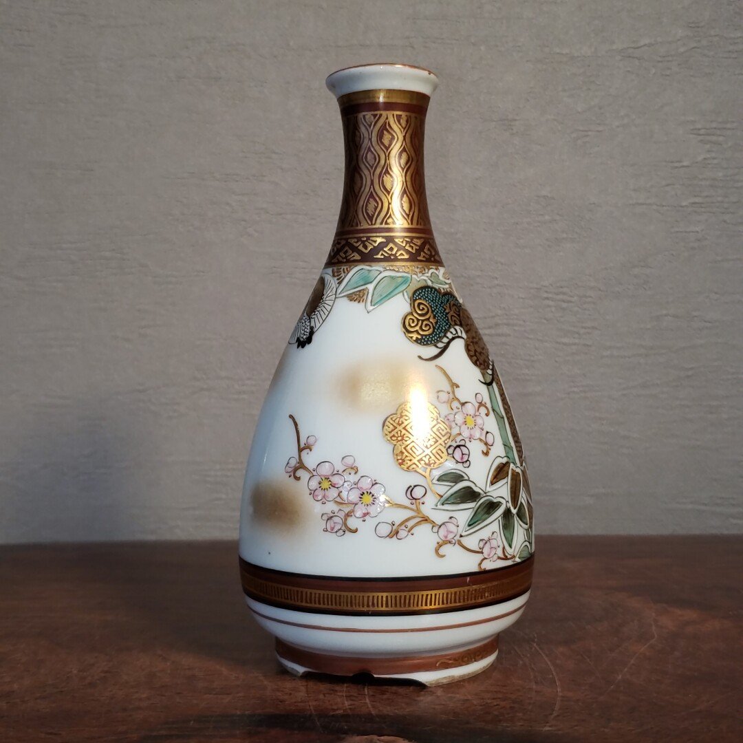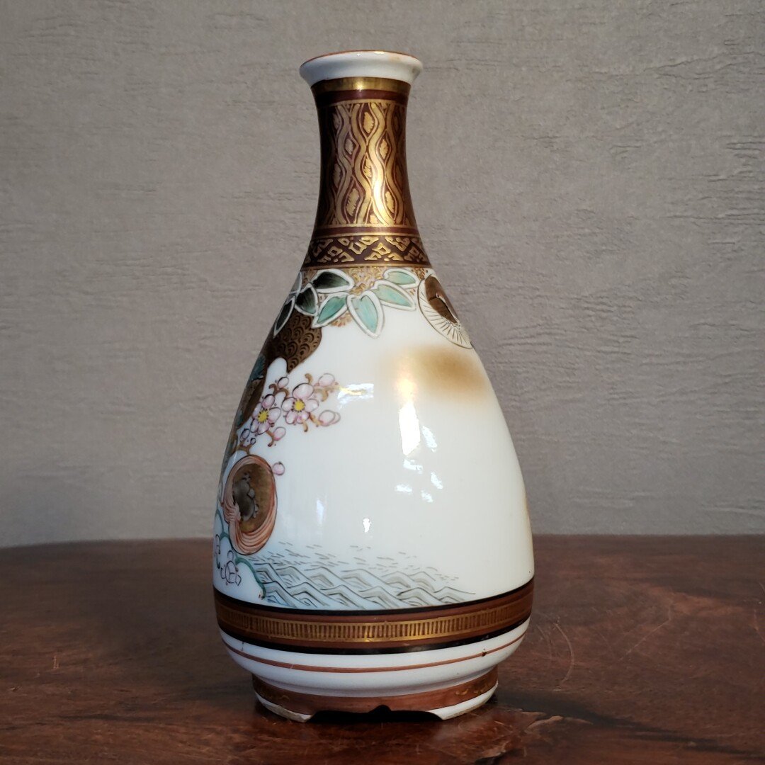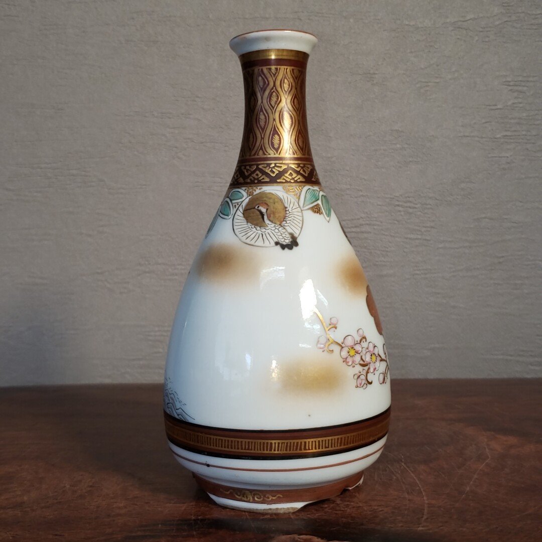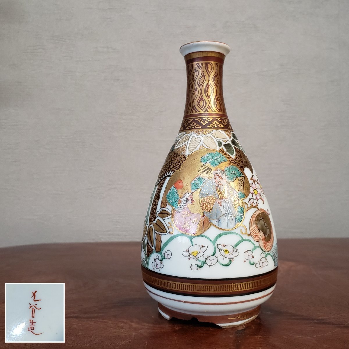 古い九谷焼の徳利です。詳しい作者は不明です。経年による汚れ、擦れがあります。上口部内側にヒビの様なものが見えます。(写真10枚目)内部はお手入れのしていない現状品となります。