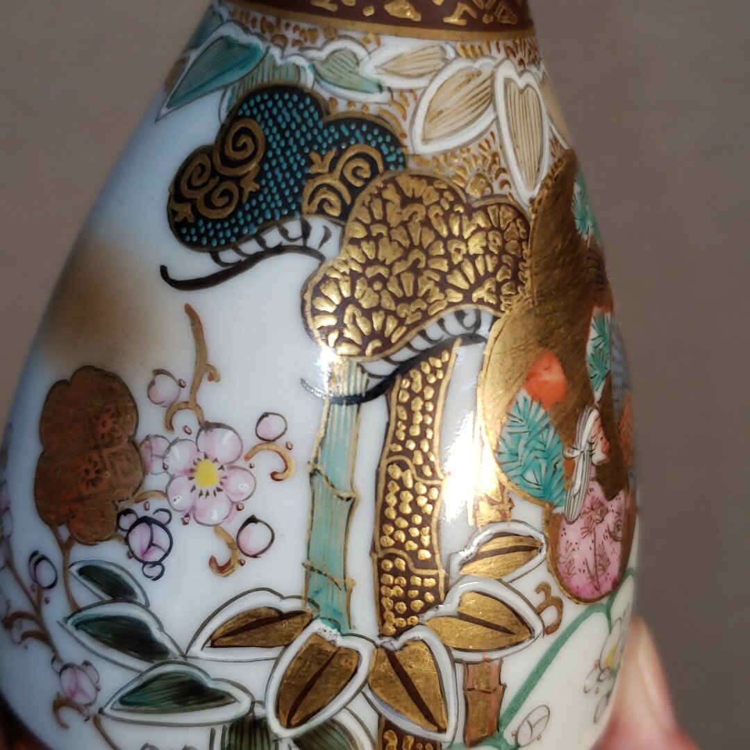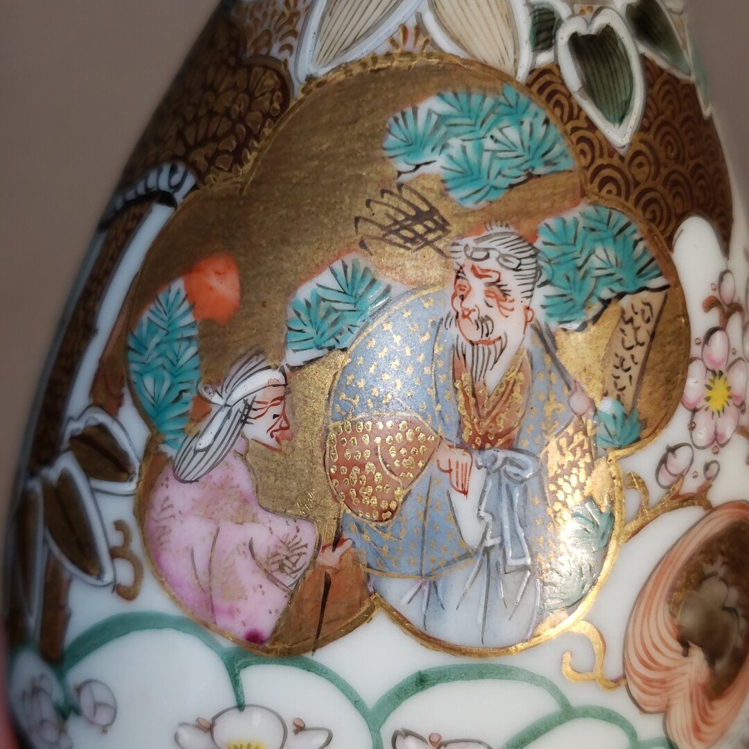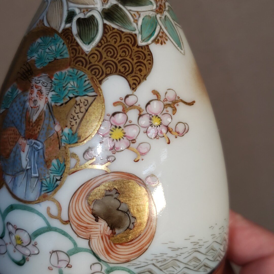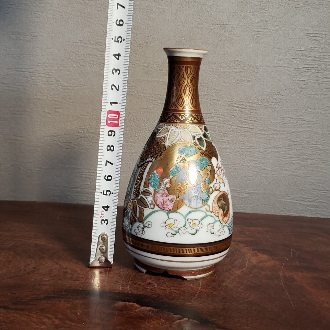 古い九谷焼の徳利です。詳しい作者は不明です。経年による汚れ、擦れがあります。上口部内側にヒビの様なものが見えます。(写真10枚目)内部はお手入れのしていない現状品となります。