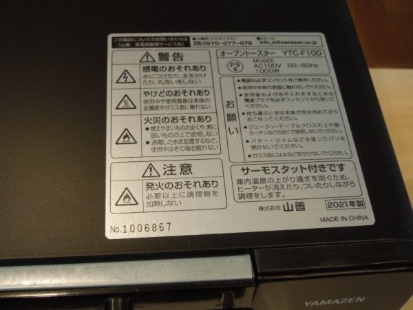 【実動動作確認済】YAMAZEN(山善) ヤマゼン トースター YTC-F100 バターロール 切り餅 ホットドック 冷凍ピザ あたため焼き