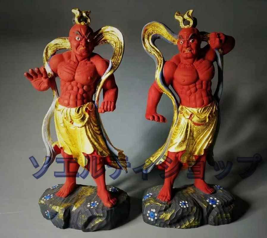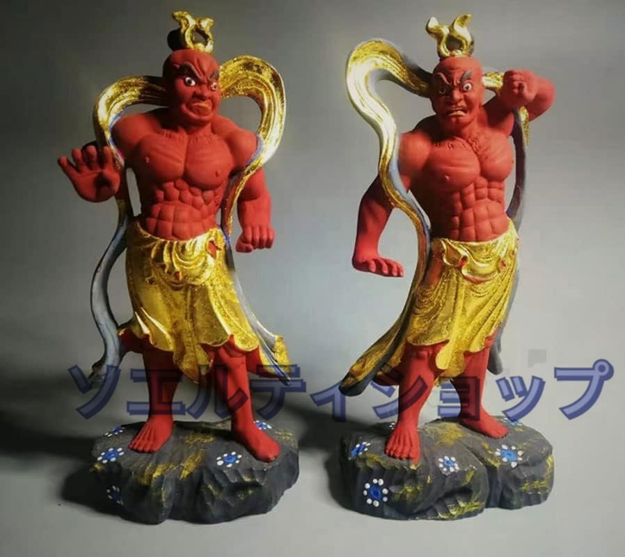 仏像 置物 金剛力士像 阿吽像 仁王像 金剛力士 2種セット 木彫り 仏壇仏像 祈る 厄除け 柘植の木 極彩色絵系