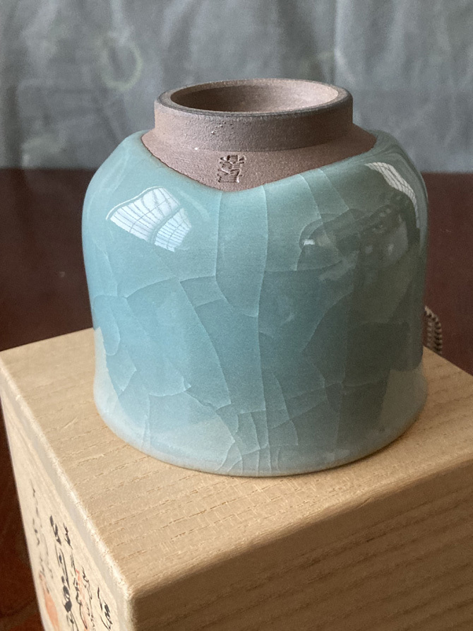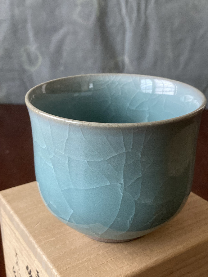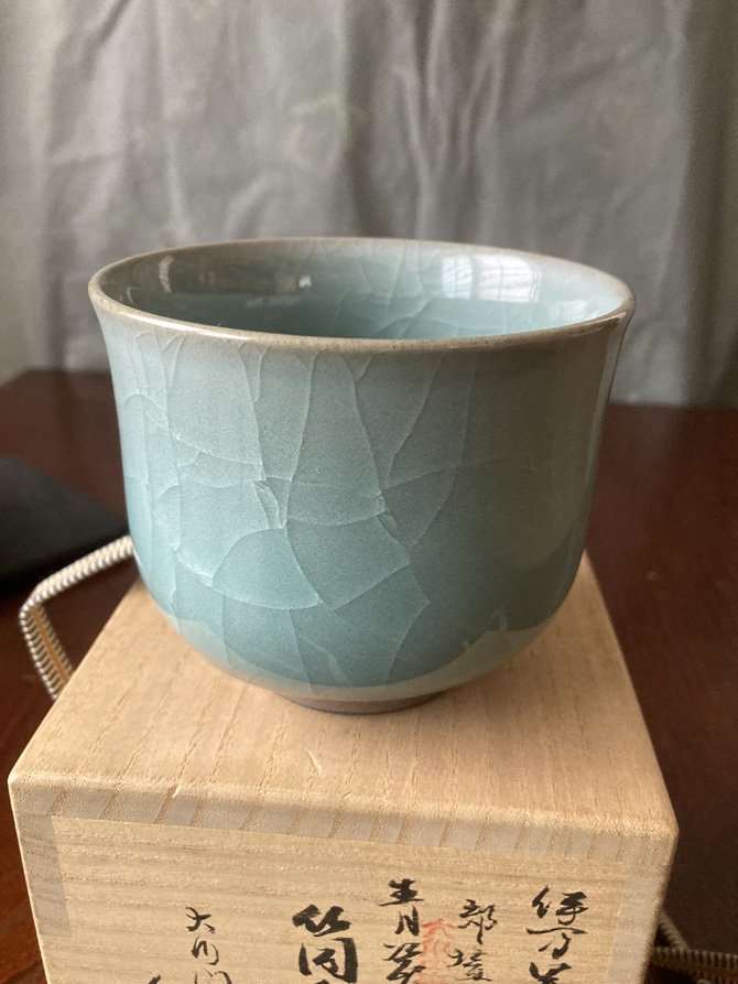 抹茶碗 伊万里焼 郊壇官窯意 青瓷筒茶 大川内山 小笠原長春  938