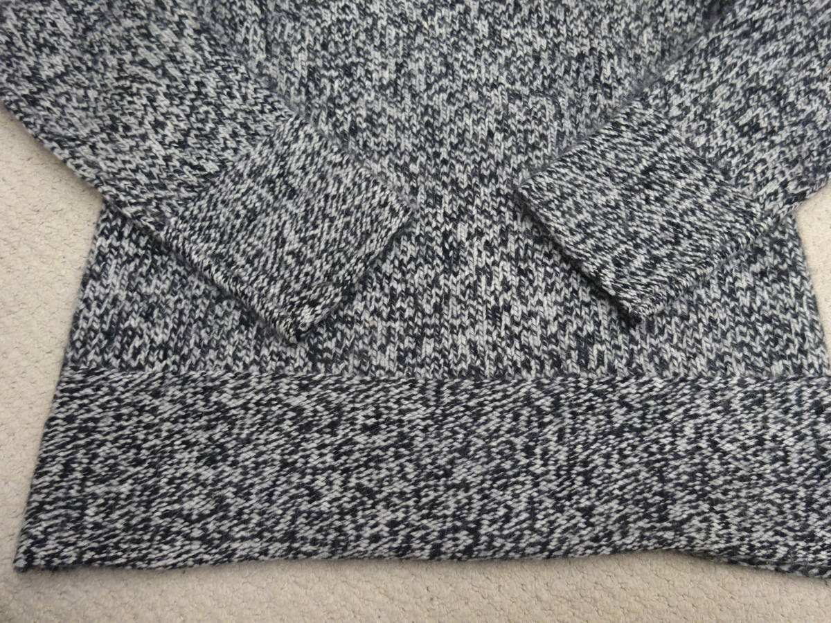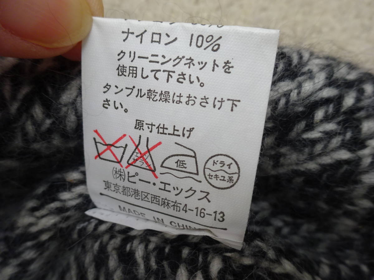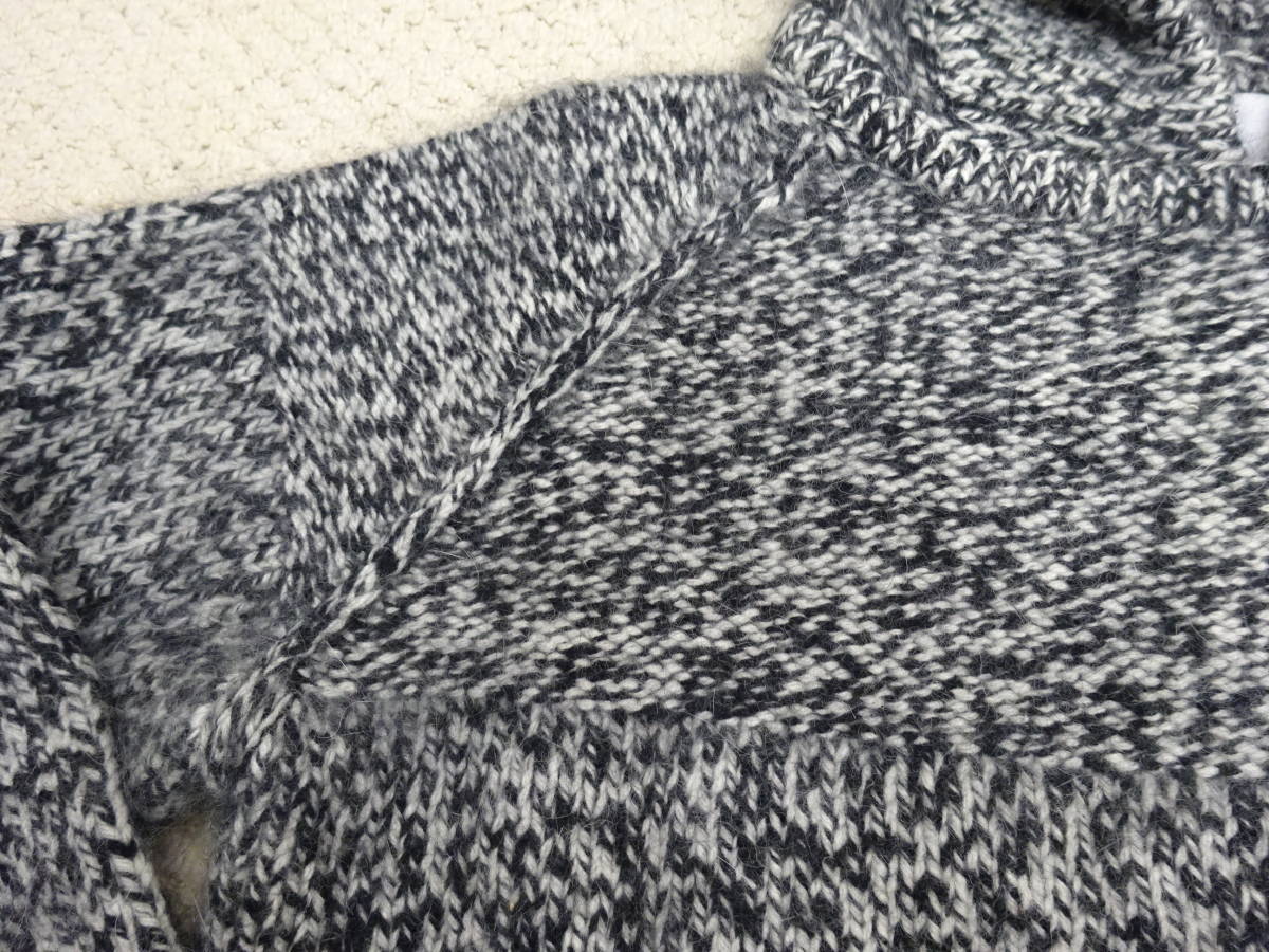 ■EU?EV?ピーエックス製★フード付き 長袖 ニット セーター パーカーになります。 ■お色は黒×グレージュの霜降り編みになります。 サイズ表記はありませんが、Mサイズ位になるかと思います。実測サイズ:身幅約47㎝、着丈約57㎝、首元から袖口まで約63㎝です。 素材: 毛60%、アンゴラ30%、ナイロン10%、ピーエックス製 ■首下&肩の上部分&丈上&袖口の編み方は身頃と違いので、面白みがあり、とてもオシャレな1着です♪ ■殆ど着用していなかったので、目立つようなシミ・汚れなどはなく、着用感もあまりなく、全体的とても綺麗な状態です。美品ですが、USEDとして上記の状態をご理解いただける方のご入札をお願いします。 | |||