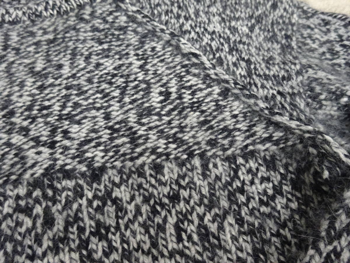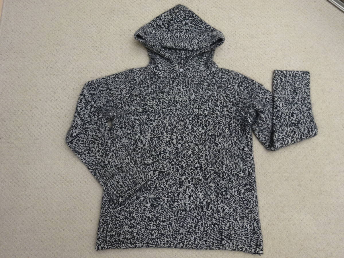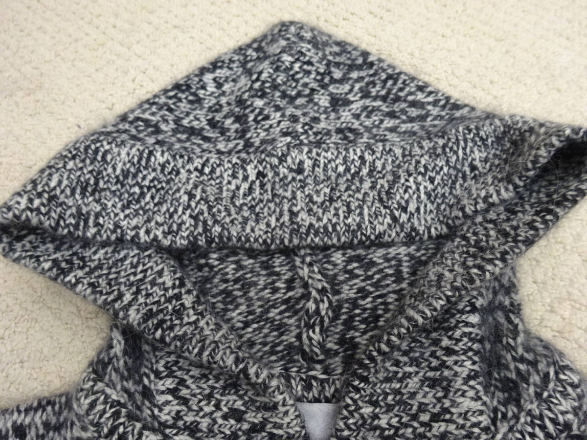 ■EU?EV?ピーエックス製★フード付き 長袖 ニット セーター パーカーになります。 ■お色は黒×グレージュの霜降り編みになります。 サイズ表記はありませんが、Mサイズ位になるかと思います。実測サイズ:身幅約47㎝、着丈約57㎝、首元から袖口まで約63㎝です。 素材: 毛60%、アンゴラ30%、ナイロン10%、ピーエックス製 ■首下&肩の上部分&丈上&袖口の編み方は身頃と違いので、面白みがあり、とてもオシャレな1着です♪ ■殆ど着用していなかったので、目立つようなシミ・汚れなどはなく、着用感もあまりなく、全体的とても綺麗な状態です。美品ですが、USEDとして上記の状態をご理解いただける方のご入札をお願いします。 | |||