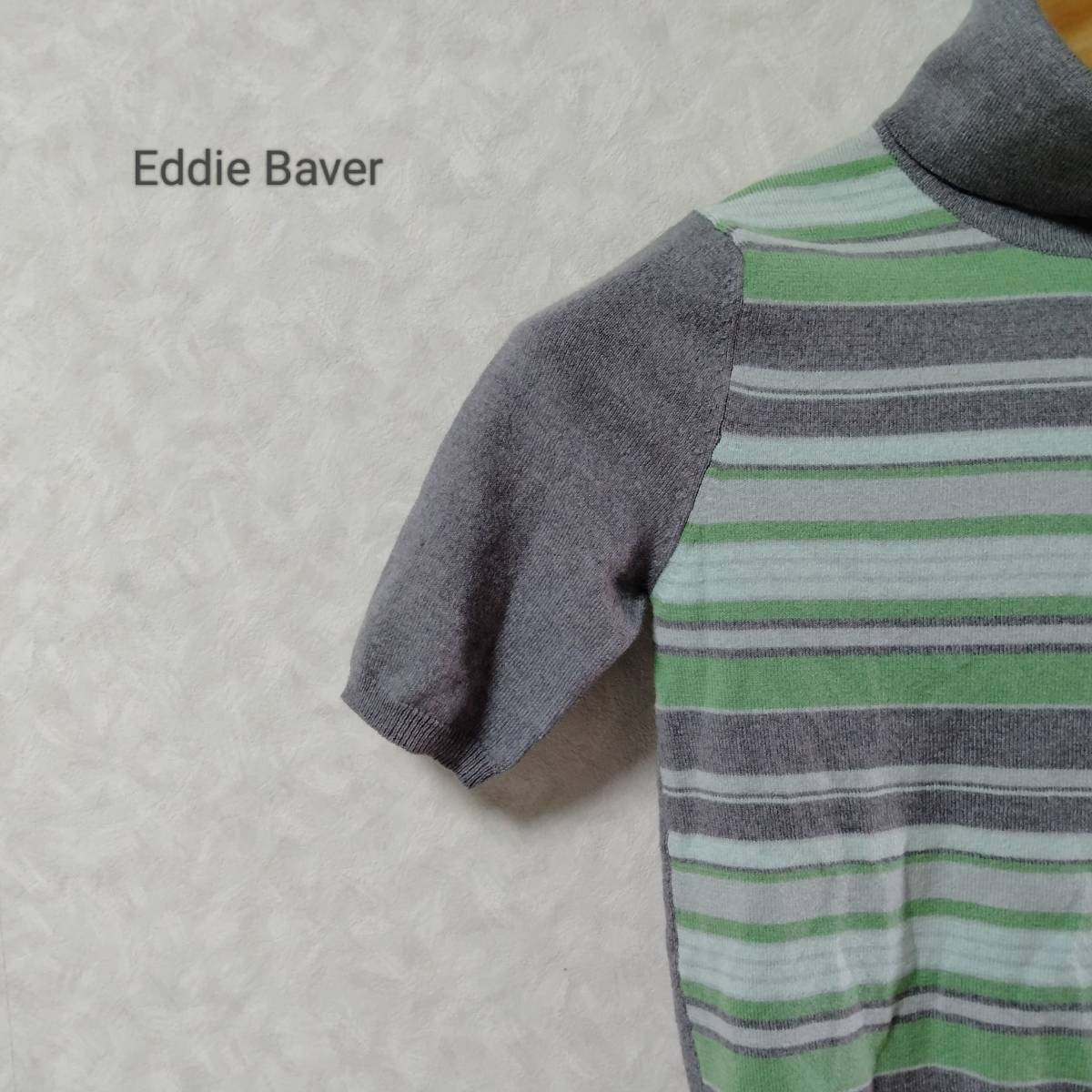 Eddie Bauer エディーバウアー ボーダー バイカラー 半袖 ニット トップス タートルネック カジュアル グリーン×グレー サイズXS SJ27