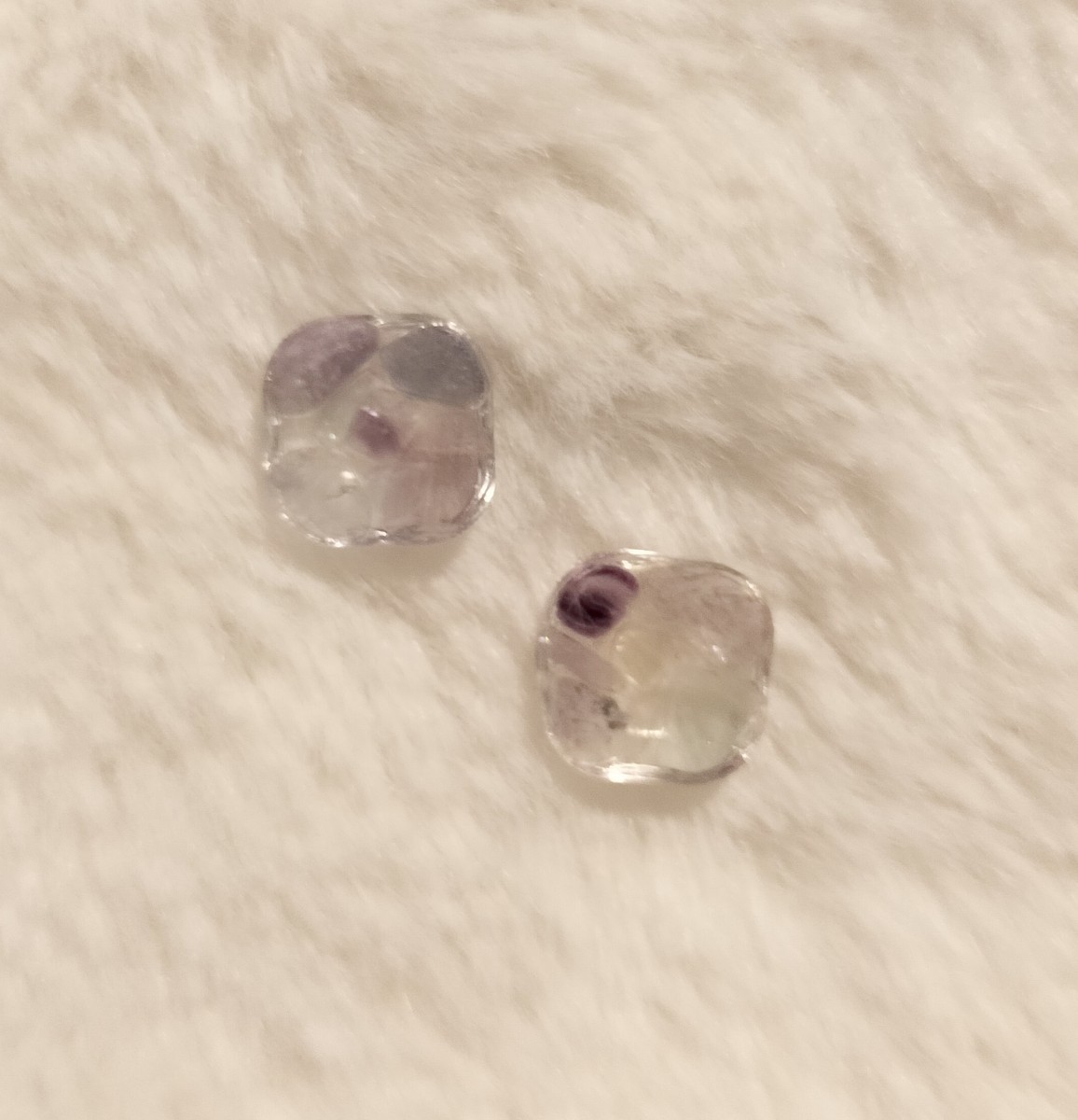 こちら丸みのある1㎝のスクエアにパワーストーンを詰め込んだピアス/イヤリングでございます(=^・^=)