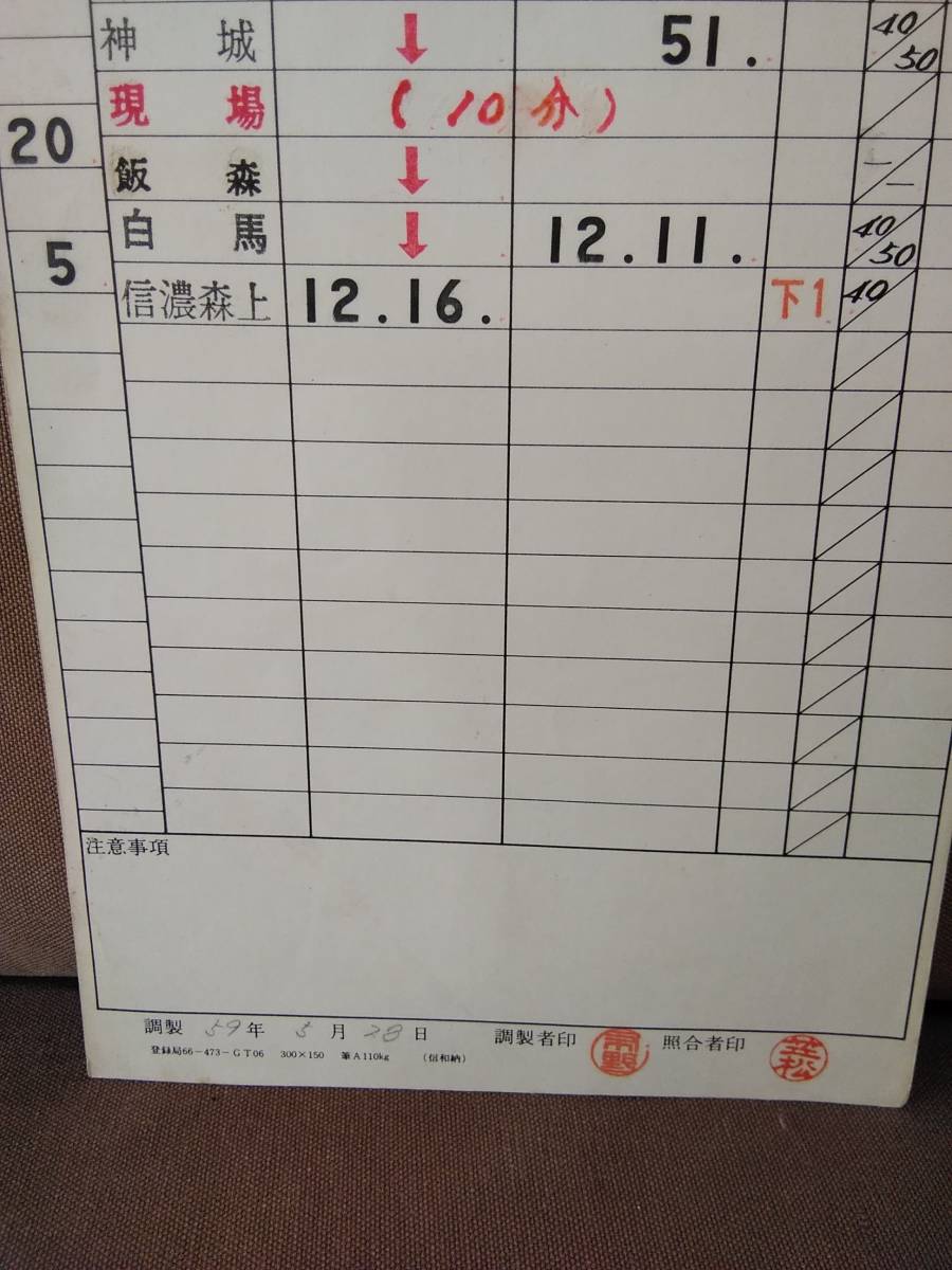 運転士時刻表 スタフ 松本運転所 DL第721仕業  工9161レ 信濃大町-信濃森上   をお譲りします。