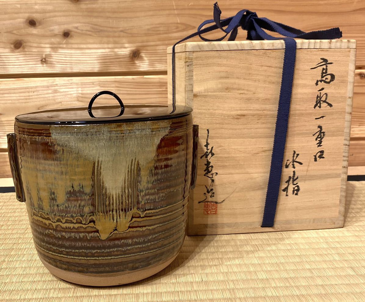 高取 喜恵の作品で、水指本体と共箱に在名です。