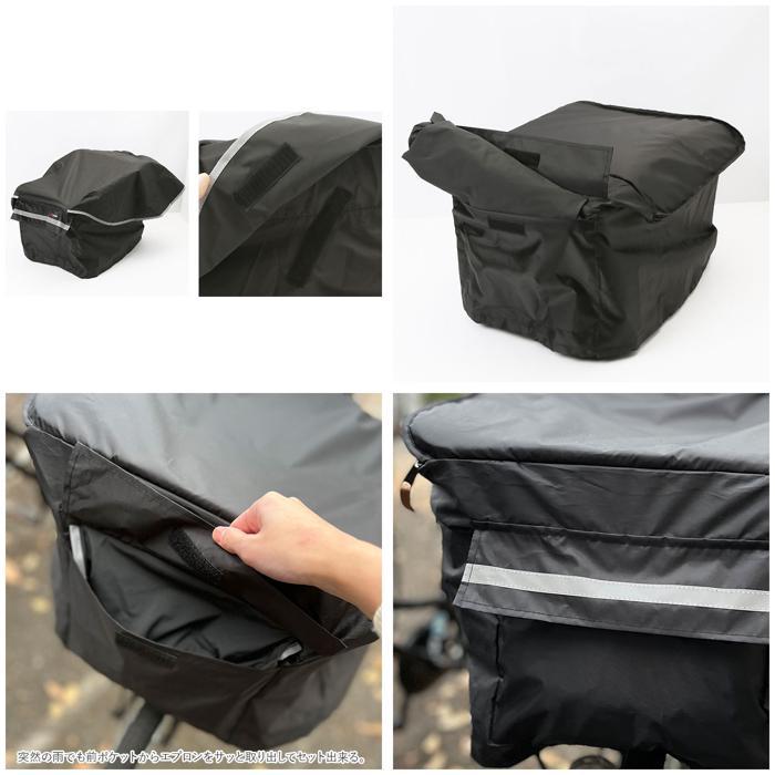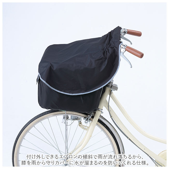 | 商品説明 | ・・膝を雨から守ってくれる「前カゴカバー」が登場。 ・付け外しできるエプロンの傾斜で雨が流れ落ちるから、膝を雨から守りカバーに水が溜まるのを防いでくれる仕様。 ・突然の雨でも前ポケットからエプロンをサッと取り出してセット出来る。 ・たるみ防止の伸縮ゴムが微妙なたるみを調節。 ・天気の良い日はエプロンを前ポケットに収納してスッキリ。 ・雨粒をしっかり弾く防水&はっ水加工生地を使用。大切な荷物を雨と盗難から守る。(※盗難抑止には効果がありますが、防犯上絶対ではありません。貴重品の管理はお客様ご自身で行ってください。) ・反射帯付きなので夜道も安心&安全。 ・シンプルなデザインとカラーで、男女問わず使いやすいのも嬉しいポイント。 |