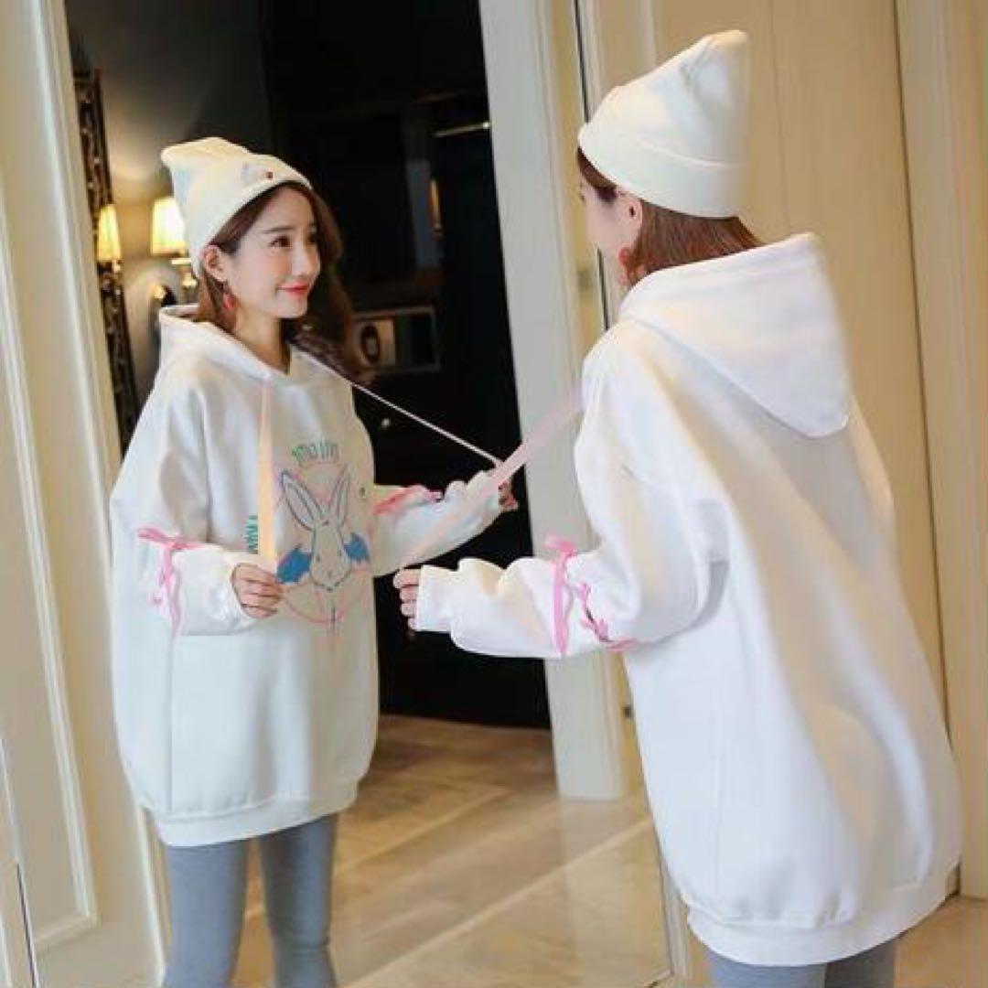 Vネック ジャンパースカート トップス セット病みかわ うさぎ パーカー ビッグシルエット ワンピース レースアップ