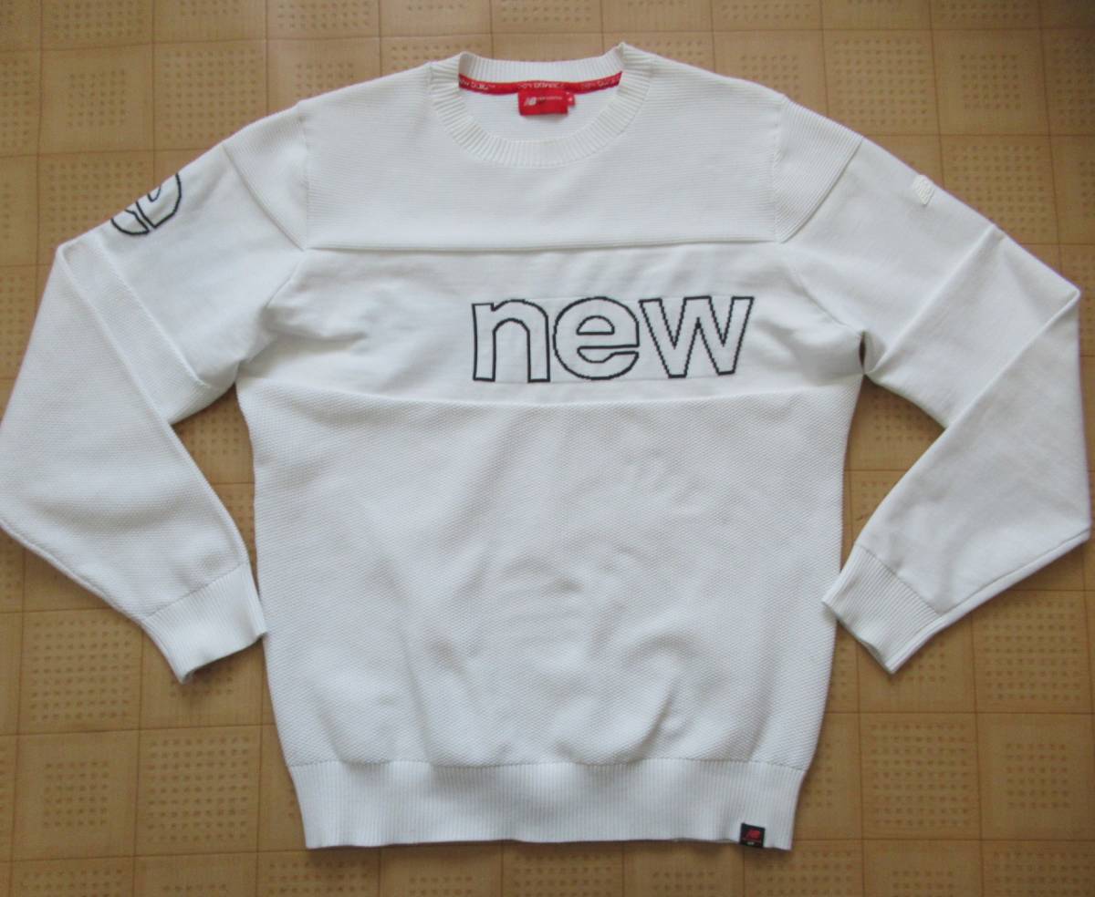 即決 New Balance GOLF クルーネックニット ホワイト 6サイズ XLサイズ相当 ニューバランス ゴルフ