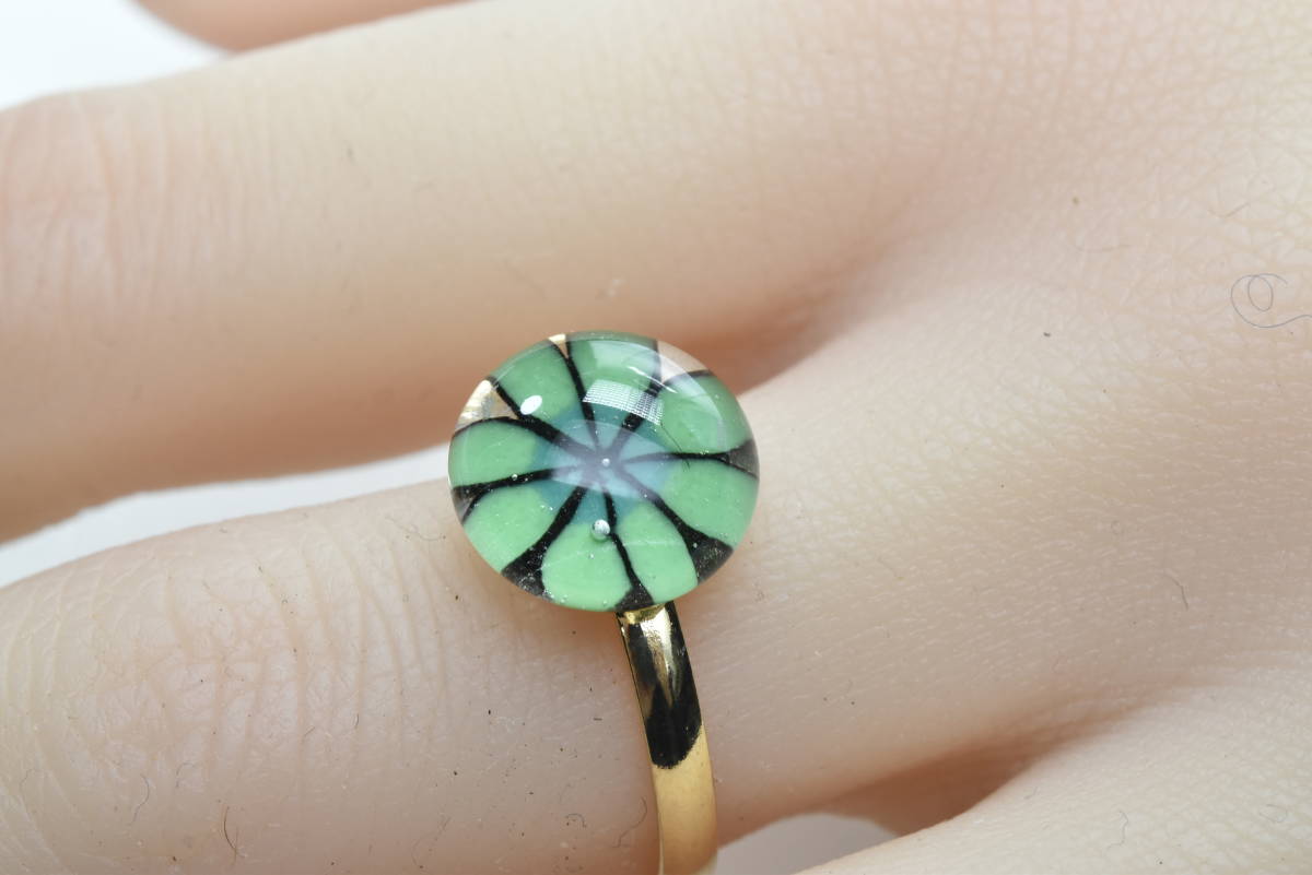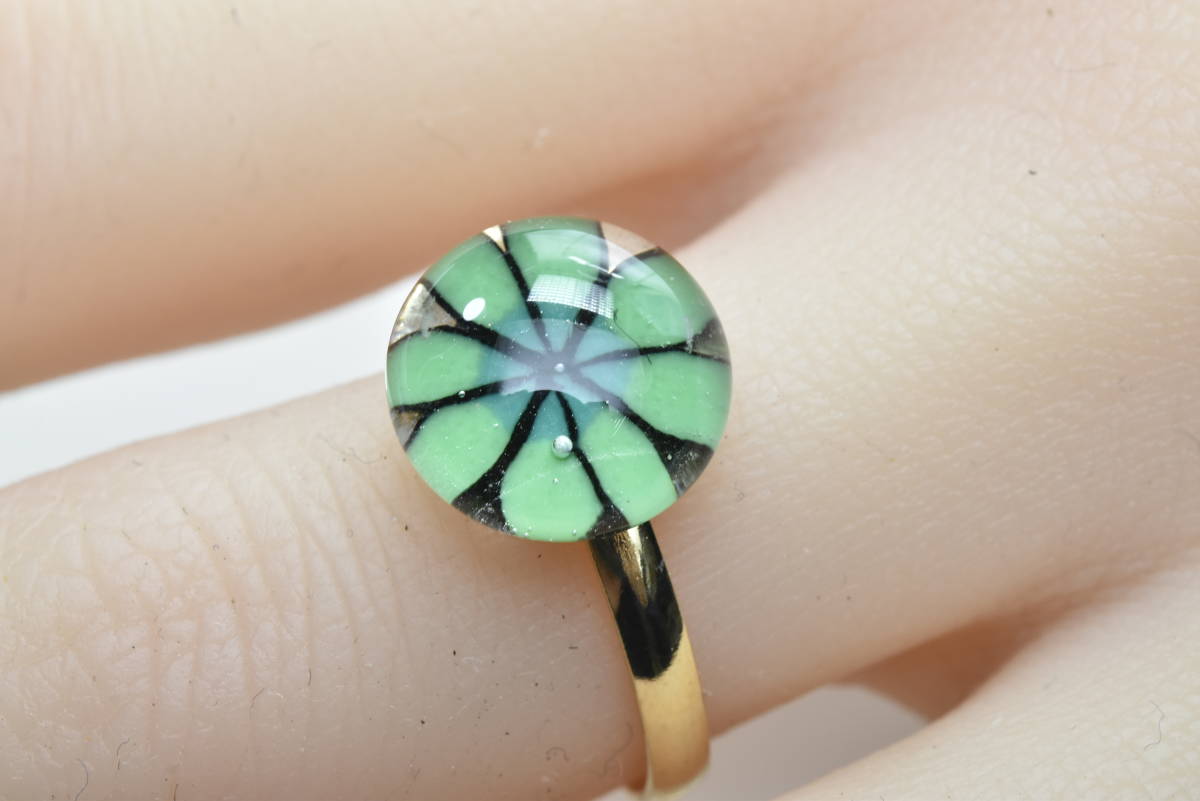 ガラス工芸家の創作した一点物のガラスの指輪。ガラスリング、ハンドメイド