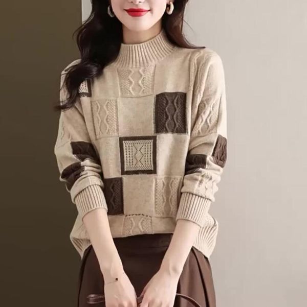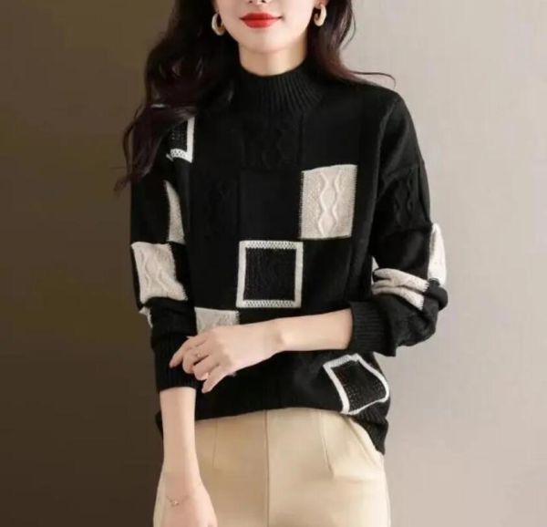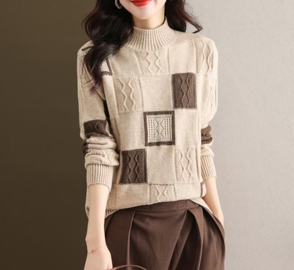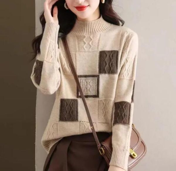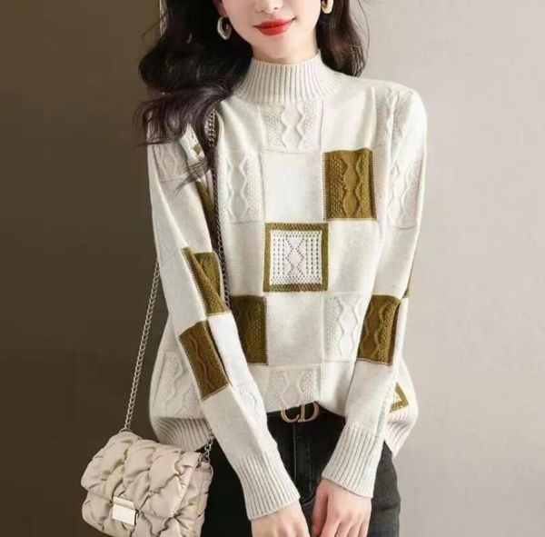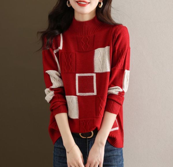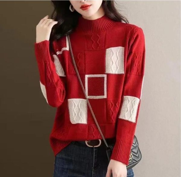 新入荷/ 秋 冬 ニット セーター 立ち襟 柔らかい トップス ゆったり 切り替え 通学 通勤 キレイめ オシャレ ゆるニット 大人 可愛い /赤