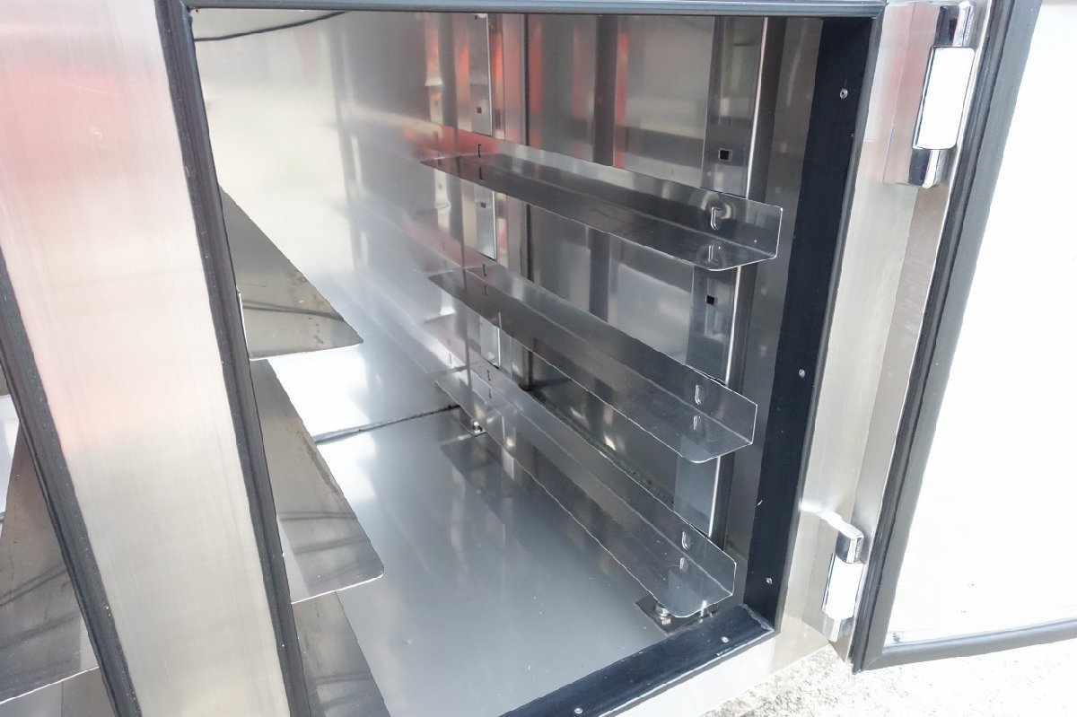 商品詳細 | 動作確認済みです。 中古品になりますので相応な使用感が御座います。 ・冷蔵 ‐5℃まで確認(最大設定) ・ホイロ 35℃/湿度80%程度まで確認 ・電源 3相200V +水道接続 ・庫内ラック 幅:42cm 奥行:65cm 高さ間隔:18cm ×6段分 (600*400規格用) ・パッキン部にカビ汚れがあります ・底部キャスター付き 商品サイズ 幅:180cm 奥行:80cm 高さ:85cm ※パレット輸送 最寄り営業所止めとなります。 ※フォークリフトのある法人、店舗様宛の場合現地までの配送可能です。 ※送料未確定の為0円表示になっております。無料ではありませんのでご注意ください。 ※商品に関するお問い合わせ等ございましたら 当方メール info@eco-box.jp 、または質問欄までご連絡ください。 | |
