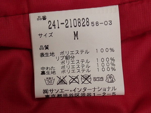 | 色 赤 素材 ポリエステル100% リブ部分 ポリエステル100% 中綿 ポリエステル100% 裏地 ポリエステル100% | |