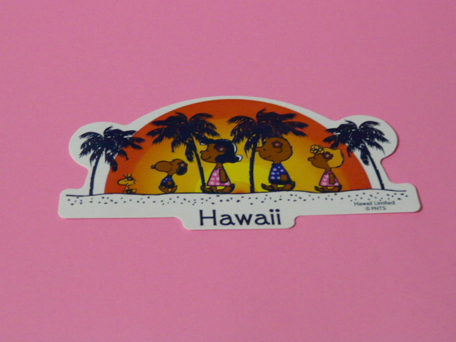 ハワイ モニ・ホノルル スヌーピー チャーリーブラウン ウッドストック サリー ルーシーのステッカーです。