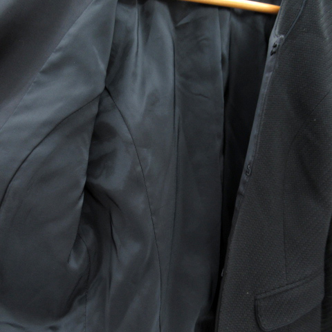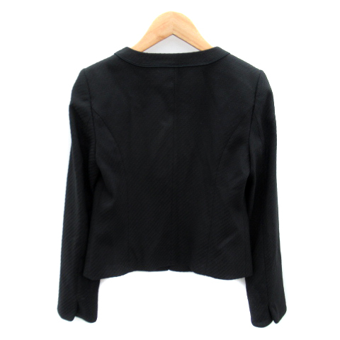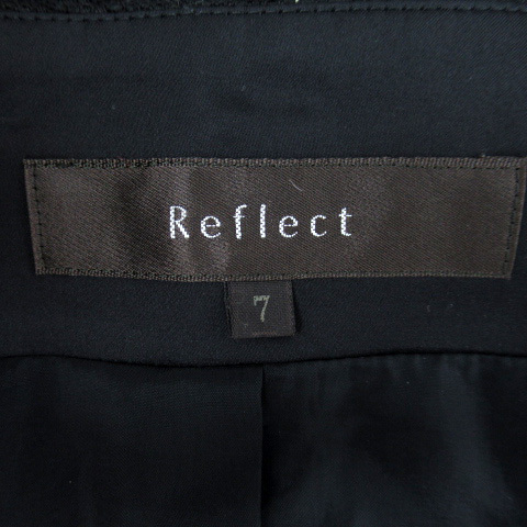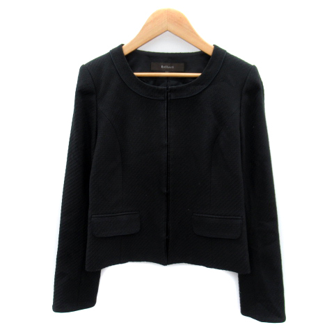 リフレクト Reflect ノーカラージャケット ミドル丈 ダイアゴナルストライプ柄 7 黒 ブラック /SY30 レディース