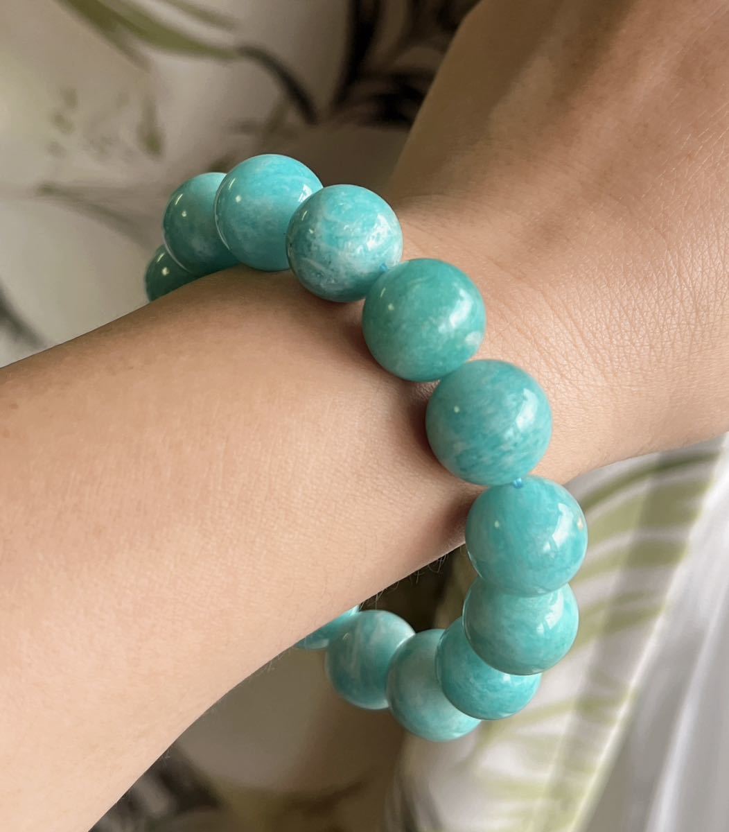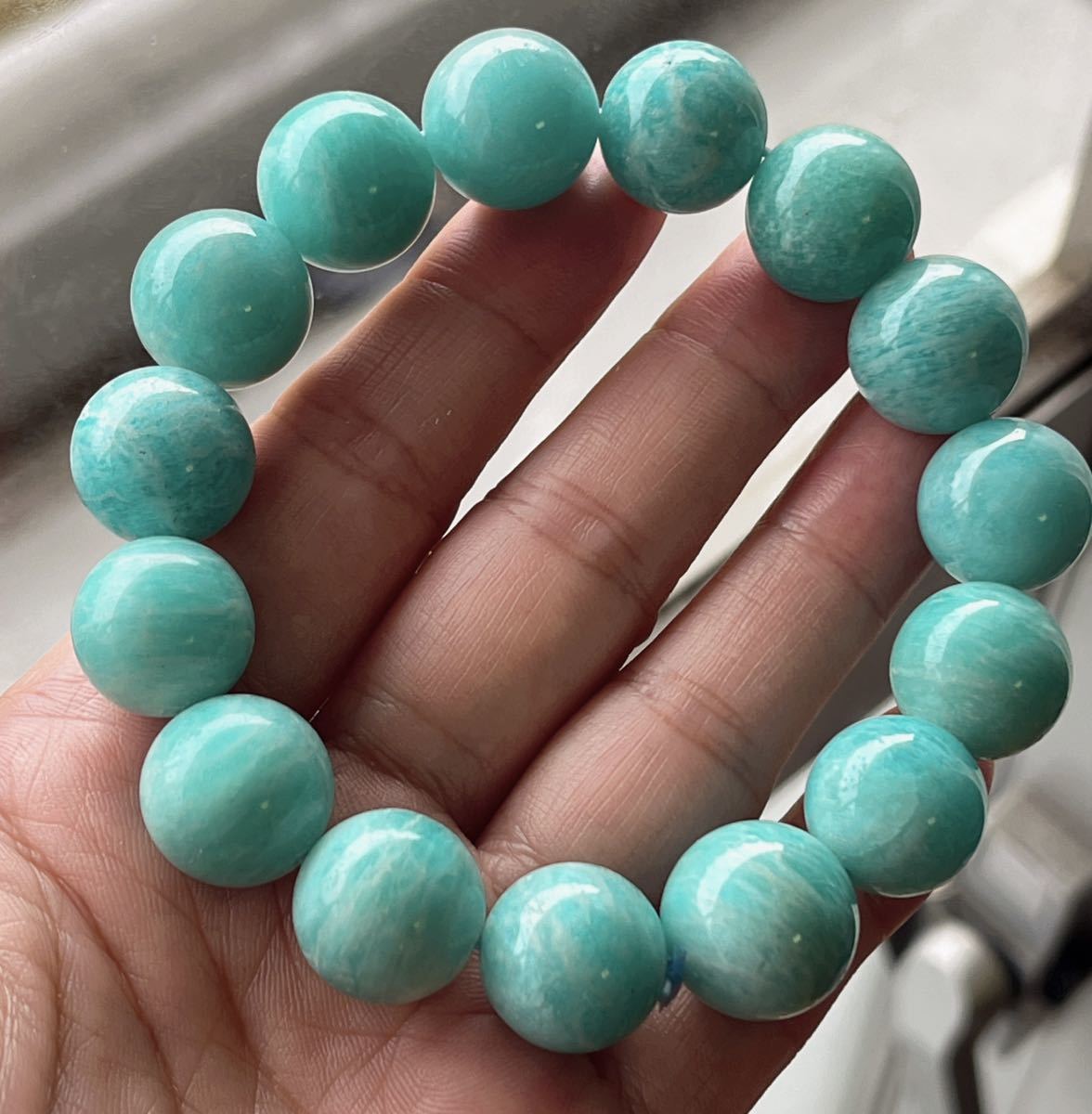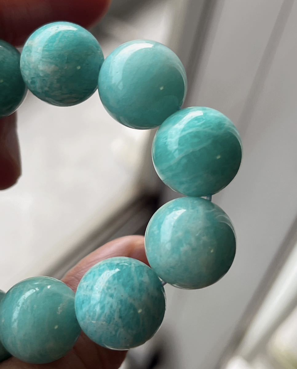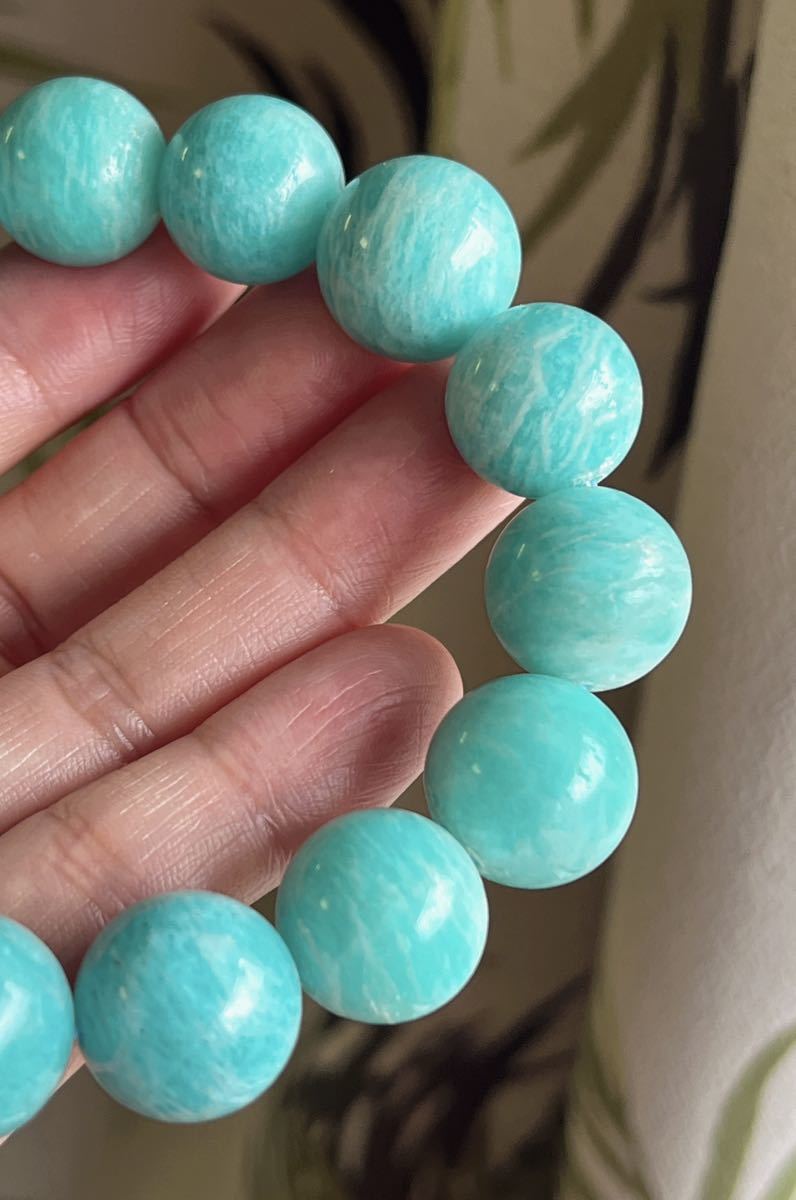 天然石 アマゾン アイスアマゾナイトブレスレットのサイズ約:14.5mm*15粒;