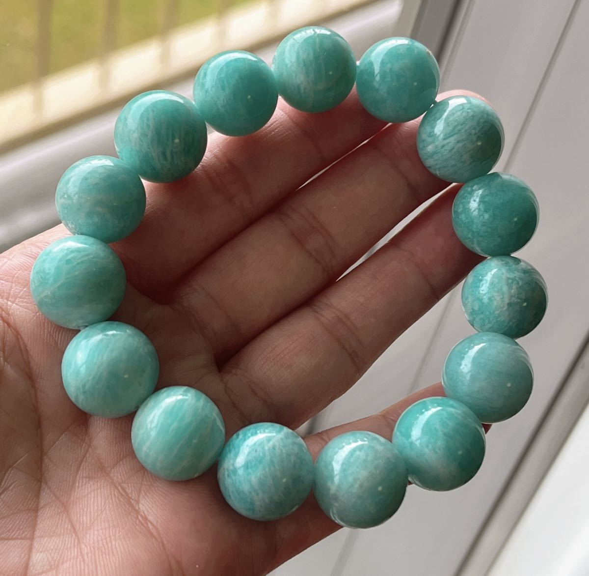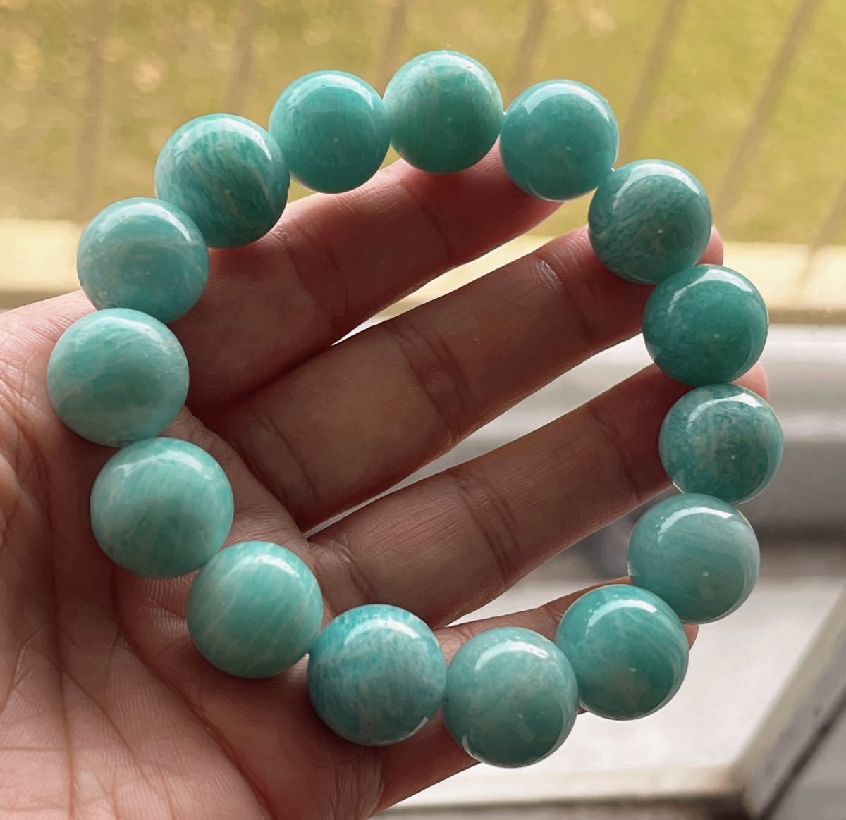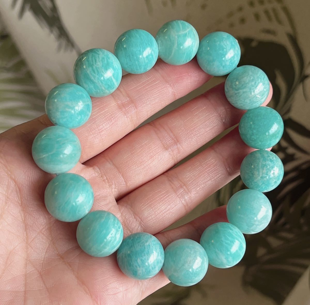 天然石 アマゾン アイスアマゾナイトブレスレットのサイズ約:14.5mm*15粒;
