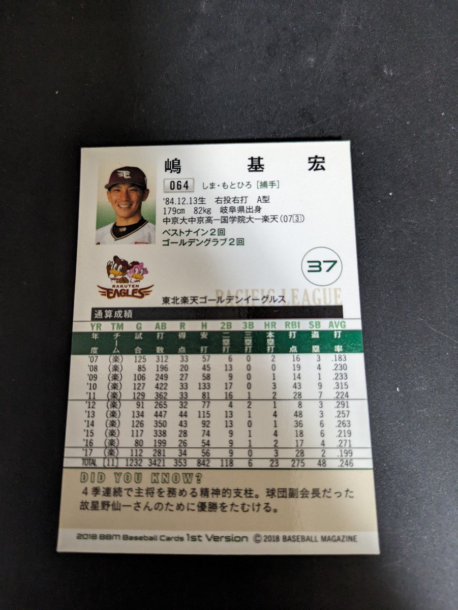 即決★BBM2018 楽天イーグルス 嶋基宏 ヤクルトスワローズ