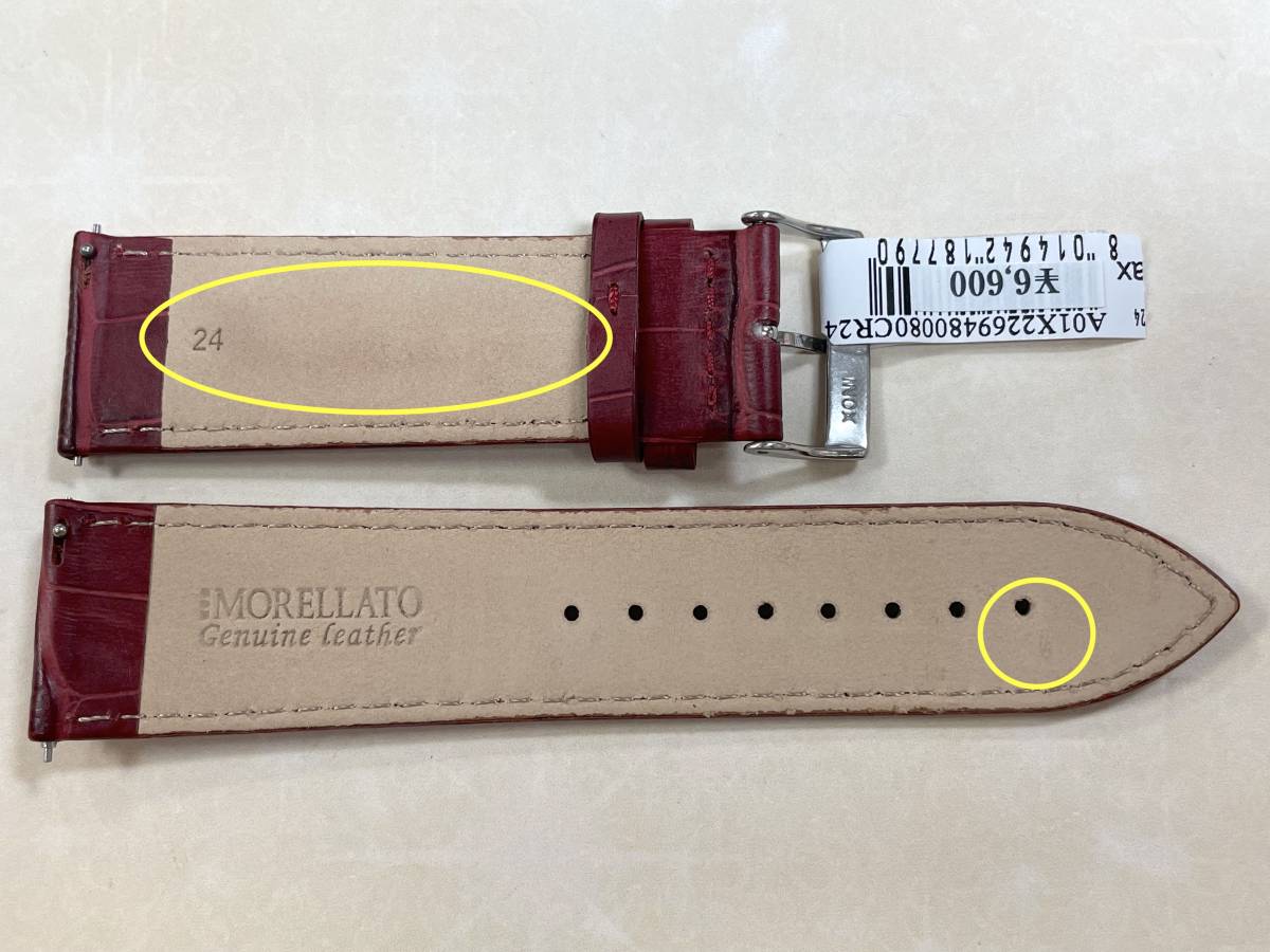 時計取り付け幅24mm、尾錠取り付け幅22mm。