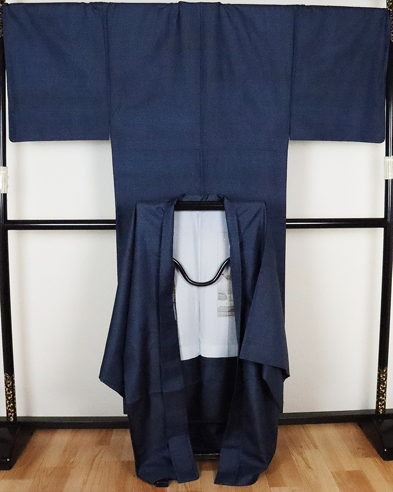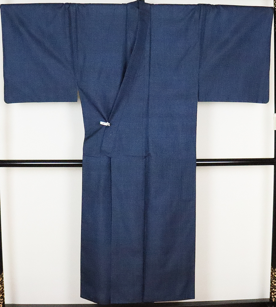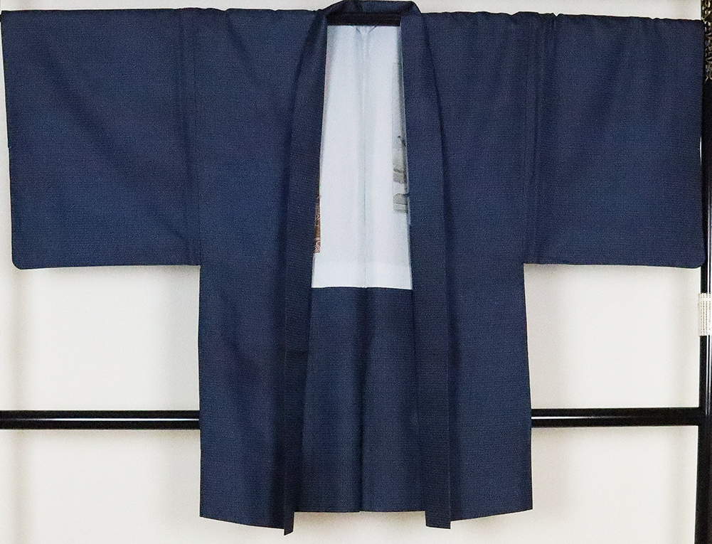 | 大島紬アンサンブル 袷 紺地小亀甲 羽織裏柄 江戸百景画柄 L寸 |
