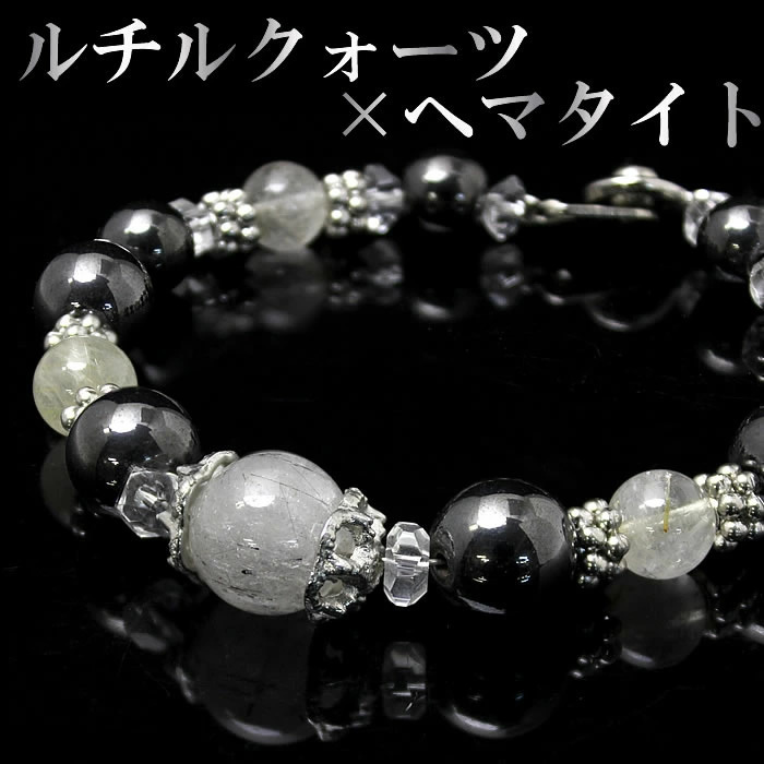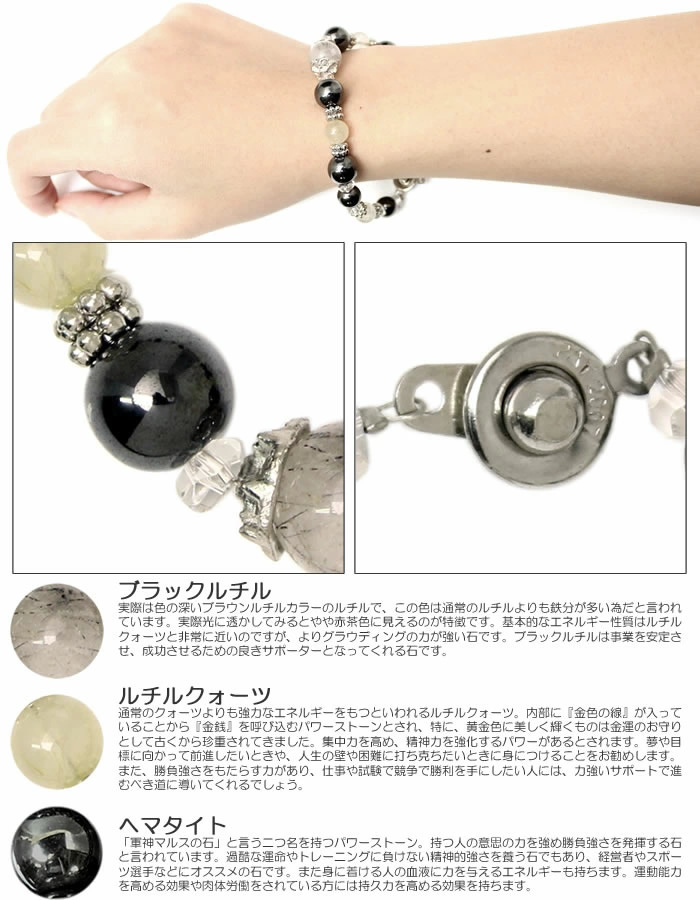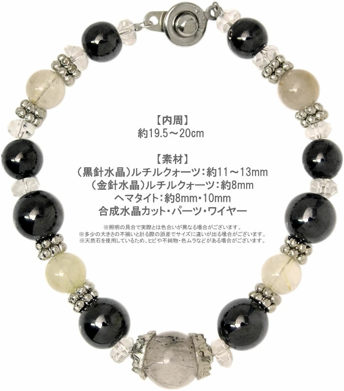 ブラックルチル×ルチルクオーツ×ヘマタイト!成功のパワーストーンブレスレット!メンズ♪金運、事業運上昇!