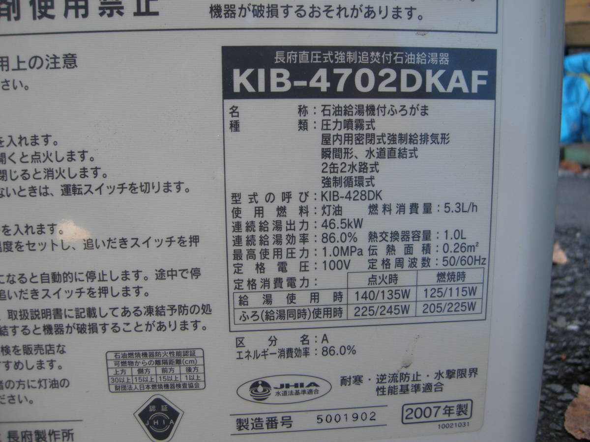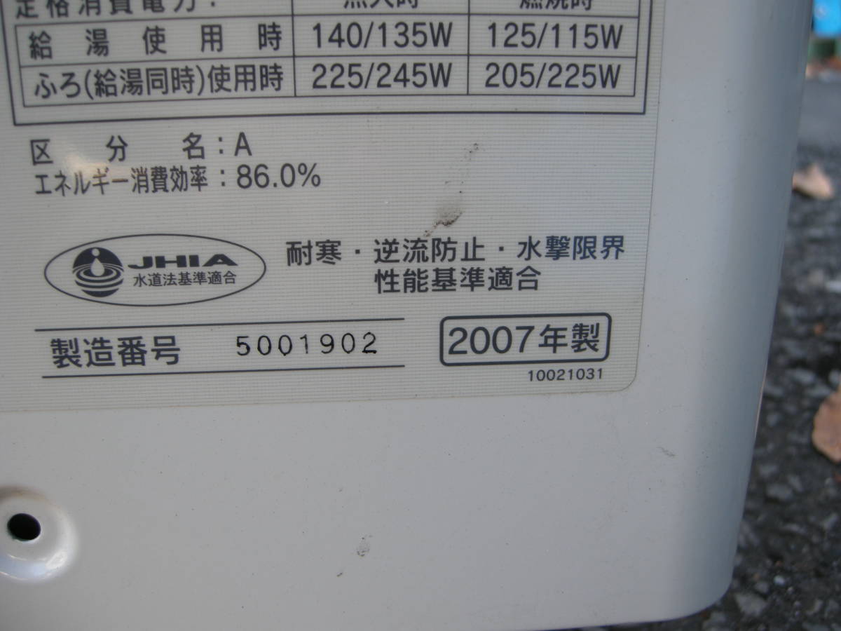 長府壁掛け式給湯器 基盤 のみ。2007年製 中古 #112