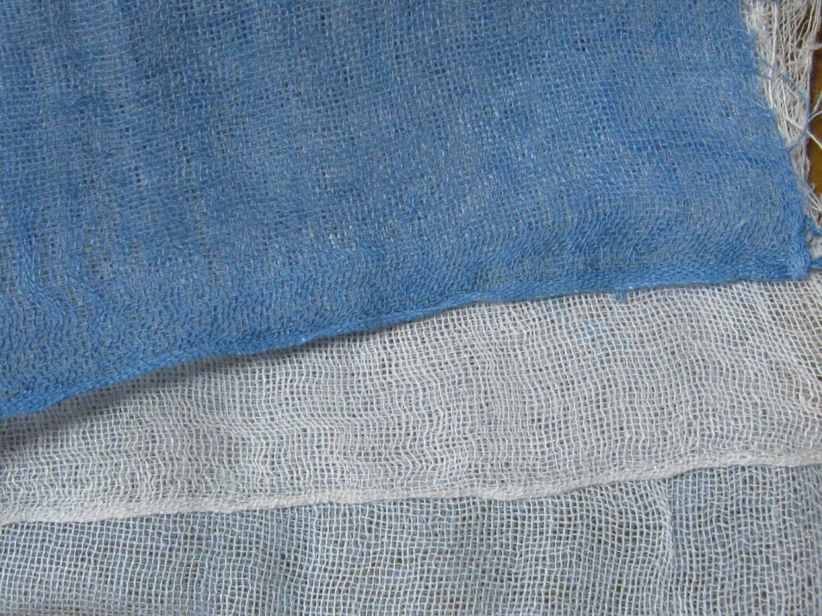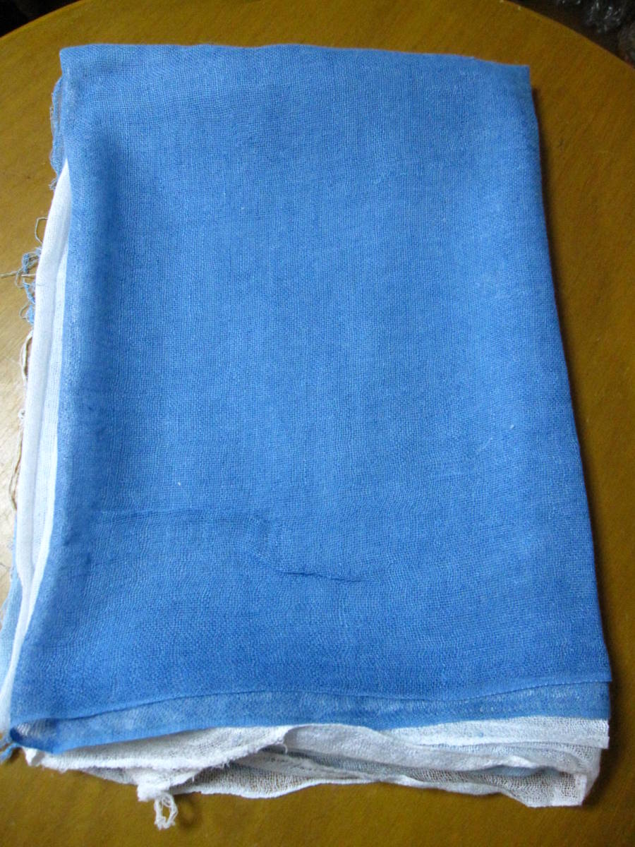 ※漂白剤 (ハイター・他も可) で蚊帳を白に戻して、好きな色で新たに染めたモノを、ストール等に。