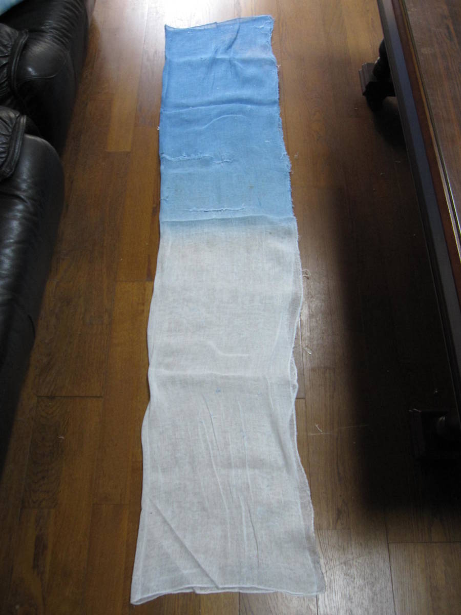 蚊帳 藍染め グラデーション 反物 麻 古布 194×107 手作り ハンドメイド ストール レトロ 手芸 ロング 格安 激安 幅広 材料 年代物 かや