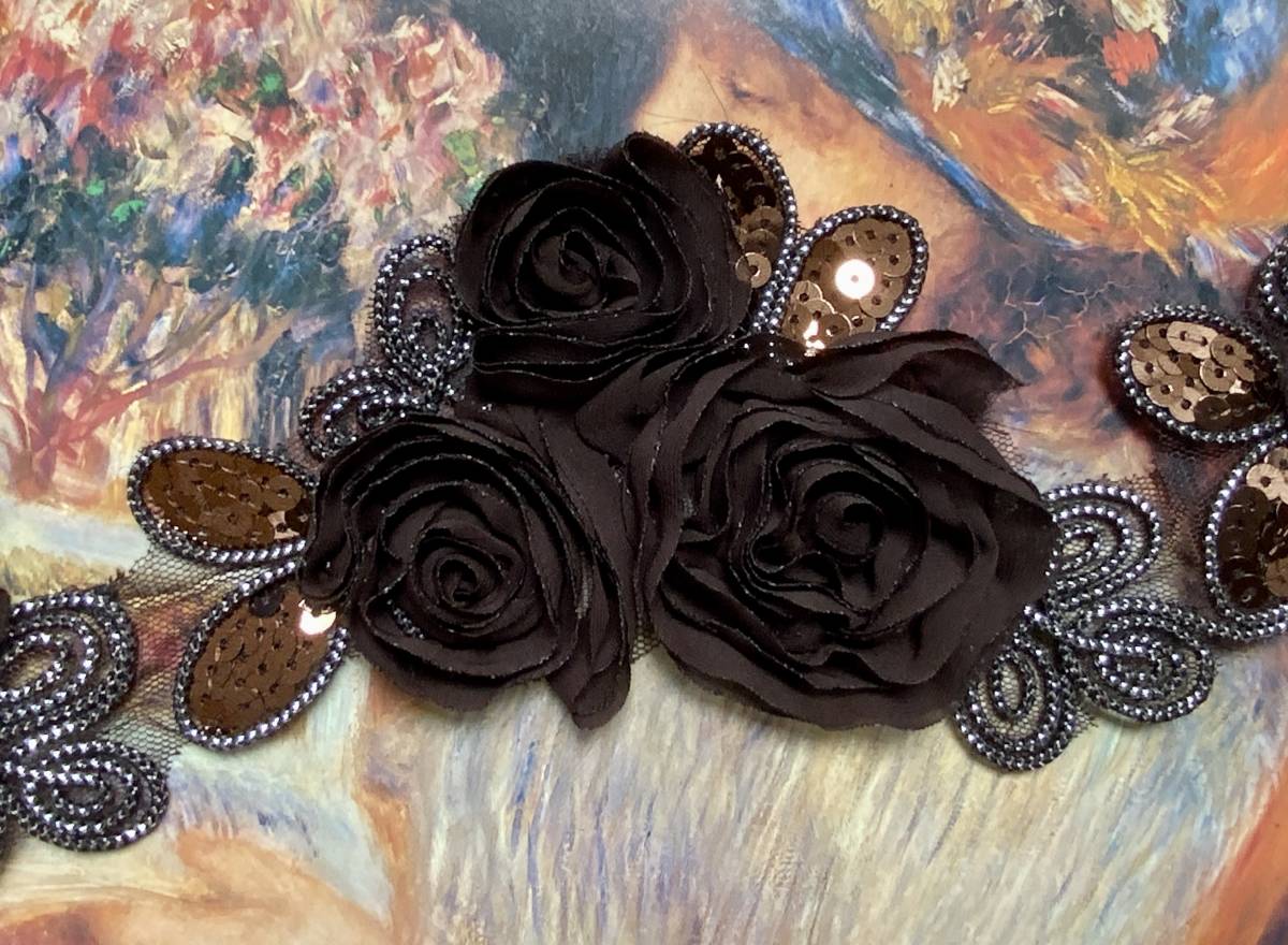 ご覧頂きありがとうございます。 ドレスや衣装、帽子、カバンの装飾に幅広くご利用ください。黒巻薔薇を丁寧につい付けたレースです。10.5m継ぎあり 他のサイトでも出品してしていますのでキャンセル削除する場合がございます。 ○横巾*約15cm*縦巾約9cm○素材* スパンコール*シフォンブラック生地 お取り置きも承りますので、落札後に1度必ずご連絡くださいませ。 オンラインショップとの同梱も可能です。 | ||