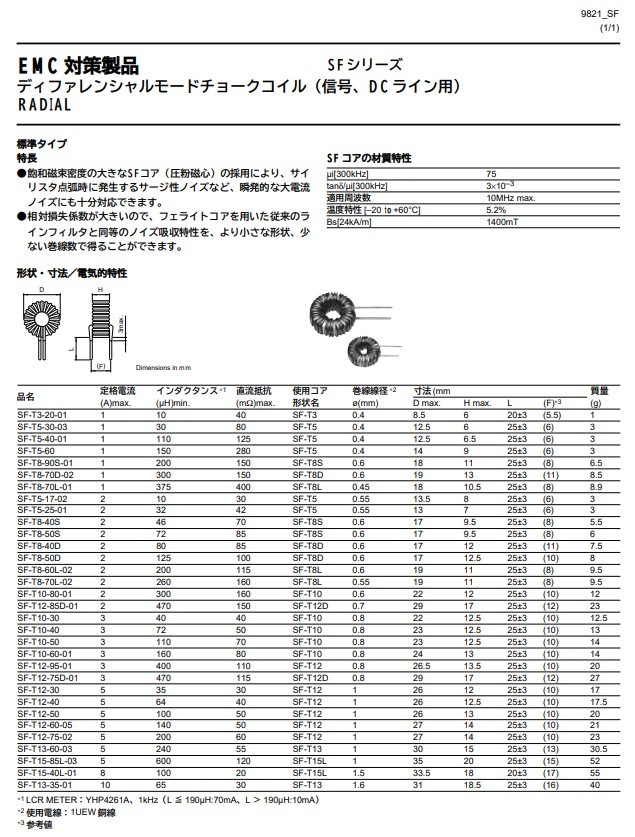 EMC対策製品 トロイダルコイル TDK SF-TS-30SーPF,SF-T8-40S-PF BOX183